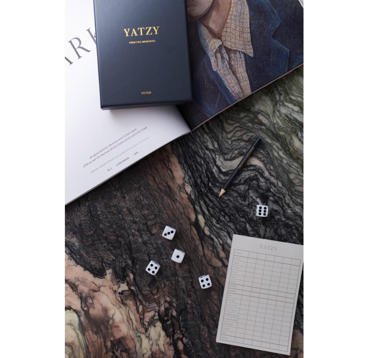 Full house, four of a kind, or yatzy? This is the game of the five dices, in a stylish box, printed with golden text. The nice gift box makes it both fun to gift away, and to use as a nice detail on the coffee table.
