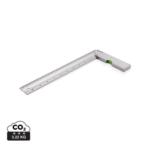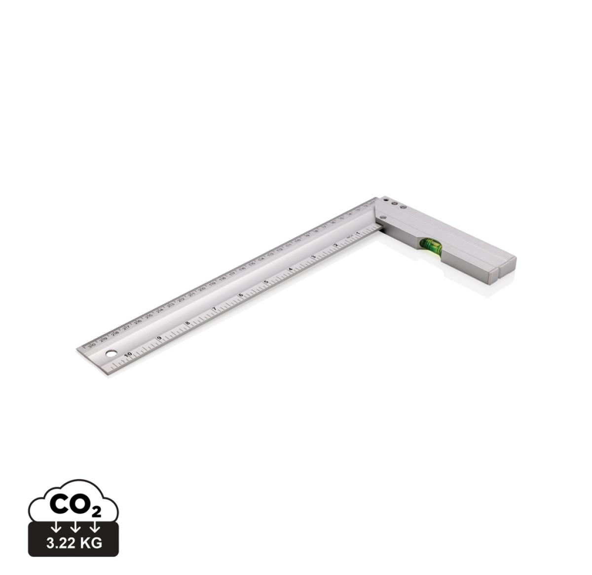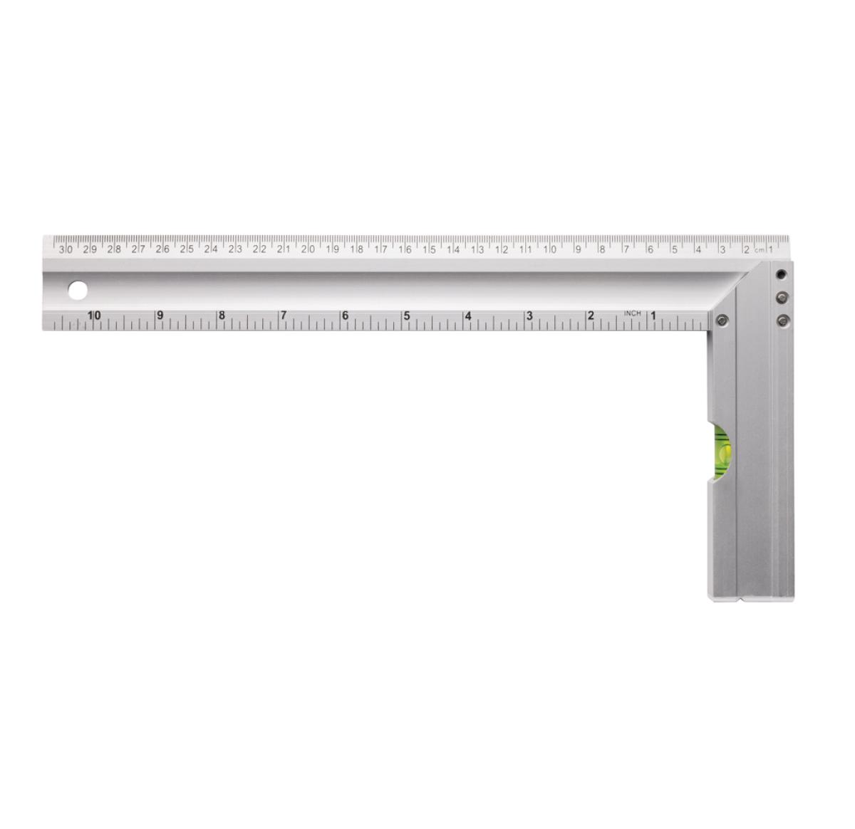 Professional aluminum square ruler with integrated level optimal to measure corners and draw squares. Double sided printing with indication in CM (30) and inches (10) Level Accuracy 0.5mm