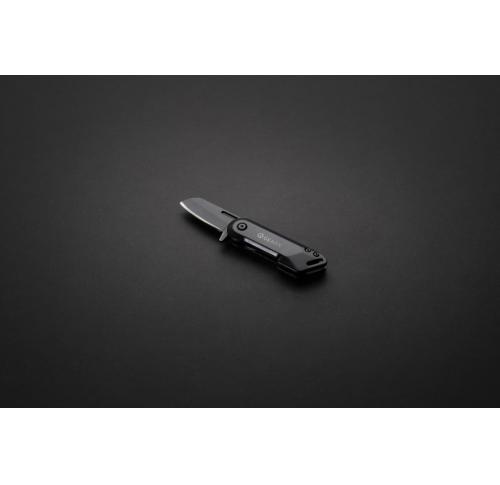 Minimal design meets strong performance with this pocket size folding knife. The fully black folding knife is made from luxury aluminum and premium grade 420 stainless steel. The long lasting knife is easy to use and lock into place. The strong design makes it the perfect knife for both outdoor and indoor use. Packed in luxury gift box.