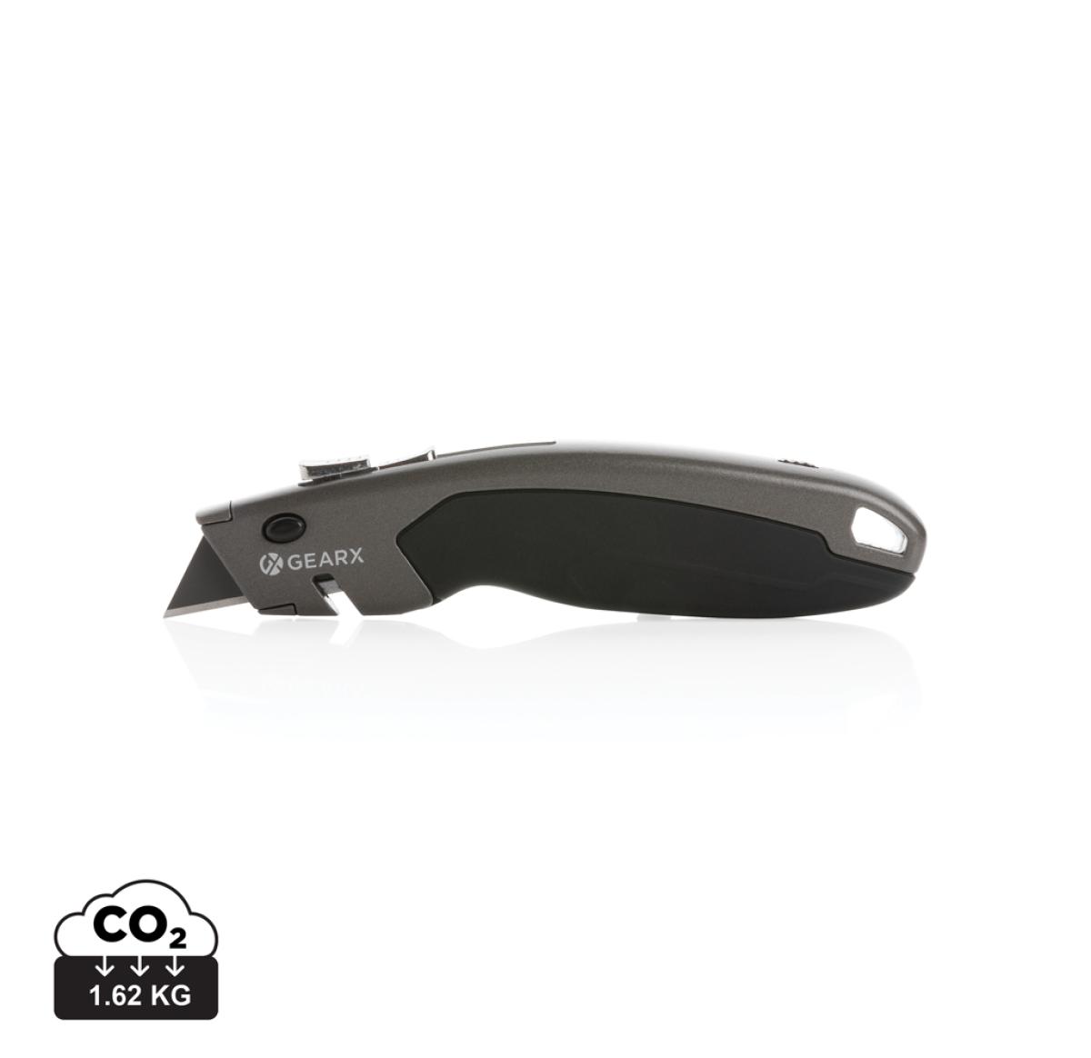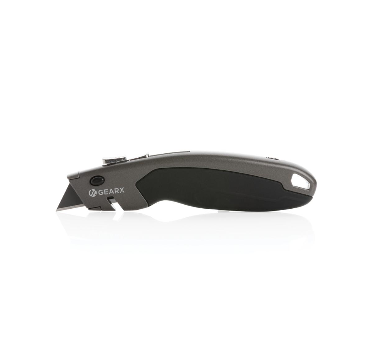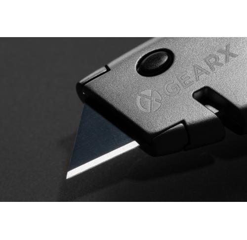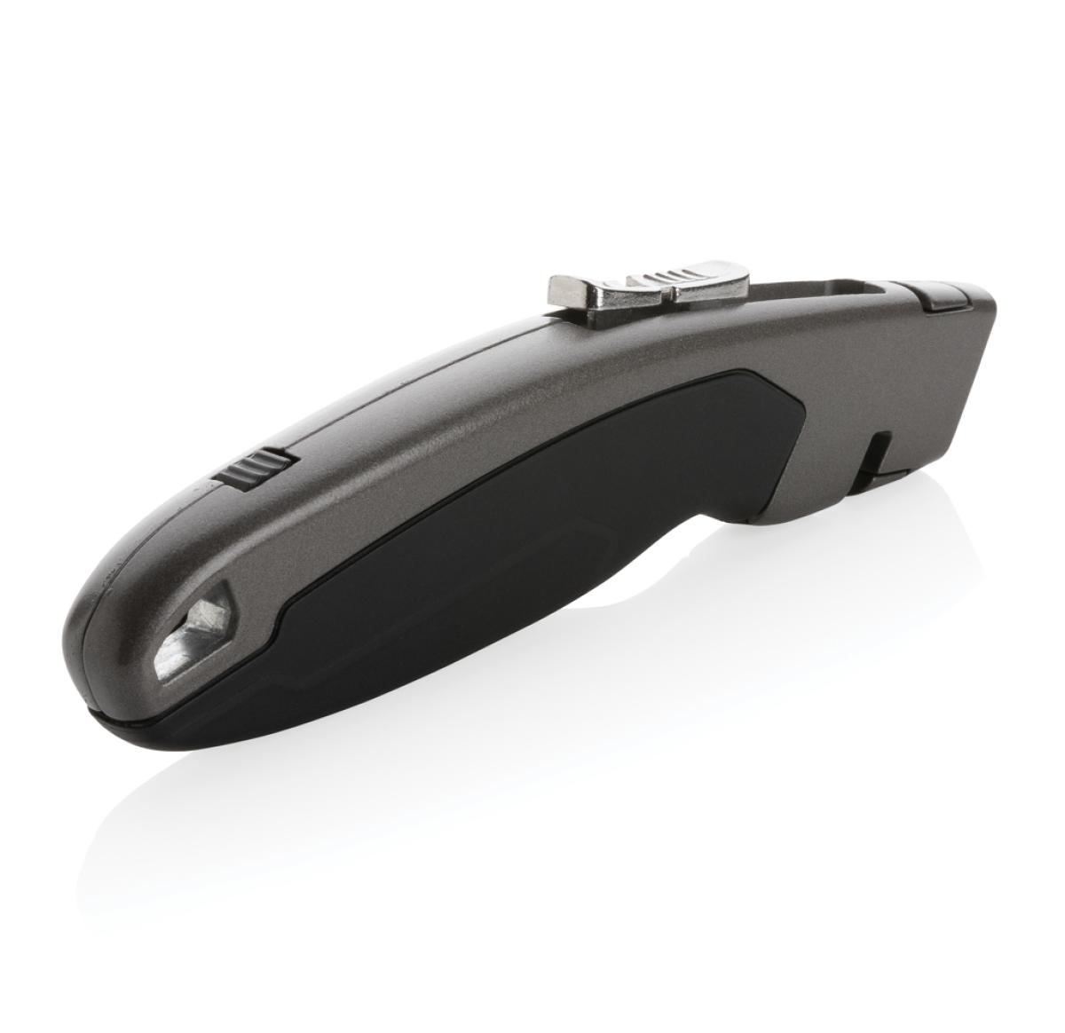 Heavy duty cutter made from durable zinc alloy. The long lasting cutter is designed to give you a comfortable grip while holding it. With retracting and lock function for easy use. With professional black SK4 blade for consistent hardness and long lasting sharpness. This cutter is ready for use when you need it. Packed in luxury gift box. Including 3 spare blades that can be stored inside the storage compartment of the item