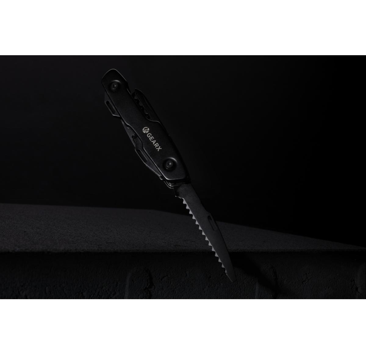 Straight clear lines combined with great functionality. This multifunctional tool combines it all, in one pocket sized essential. The luxury aluminum body is matched with premium grade 420 stainless steel tools all presented in black. The 13 functions include: Knife, saw, slotted screwdriver, can opener, file, small Philips screwdriver, Philips screwdriver, corkscrew, thread guide, leather punch, box cutter, bottle opener and small blade. This multifunctional knife is ready for use when you need it. Packed in luxury gift box.