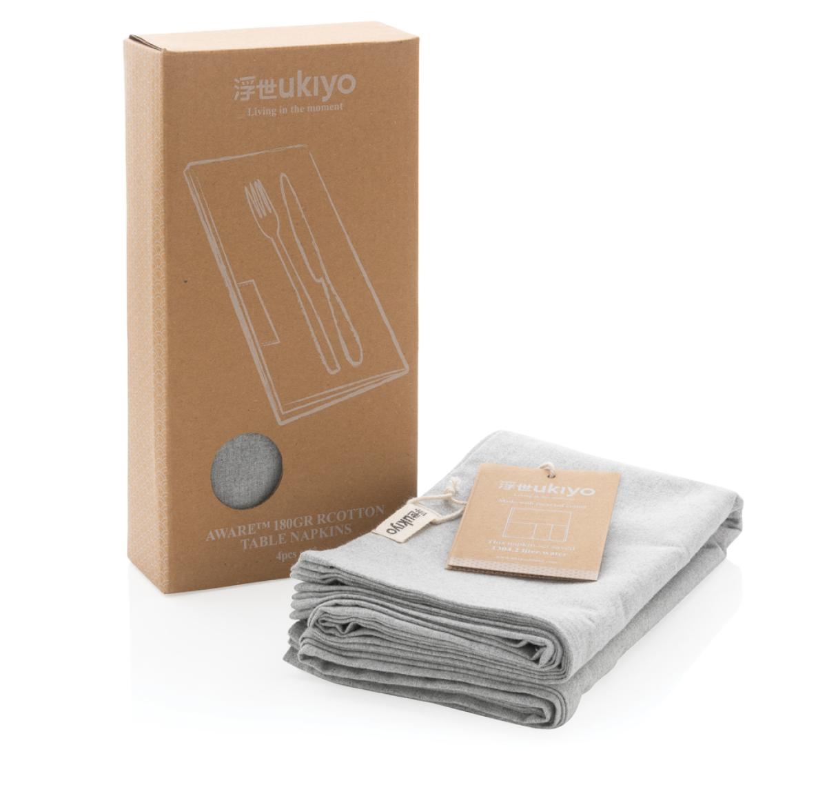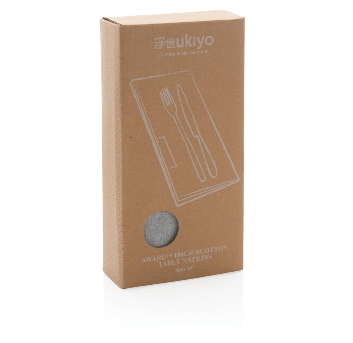 These beautiful Ukiyo table napkins 45x45cm are made from recycled cotton. These table napkins can be used as a napkin or placemat and add the finishing touch to your dining table. Comes as a 4pc set in a kraft gift box. The recycled cotton is with AWARE?? tracer that validates the genuine use of recycled materials. Each set of 4 napkins saves 1304.2 litres of water. 2% of proceeds of each product sold containing AWARE?? will be donated to Water.org.