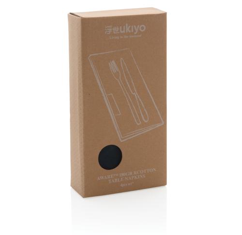 These beautiful Ukiyo table napkins 45x45cm are made from recycled cotton. These table napkins can be used as a napkin or placemat and add the finishing touch to your dining table. Comes as a 4pc set in a kraft gift box. The recycled cotton is with AWARE?? tracer that validates the genuine use of recycled materials. Each set of 4 napkins saves 1304.2 litres of water. 2% of proceeds of each product sold containing AWARE?? will be donated to Water.org.