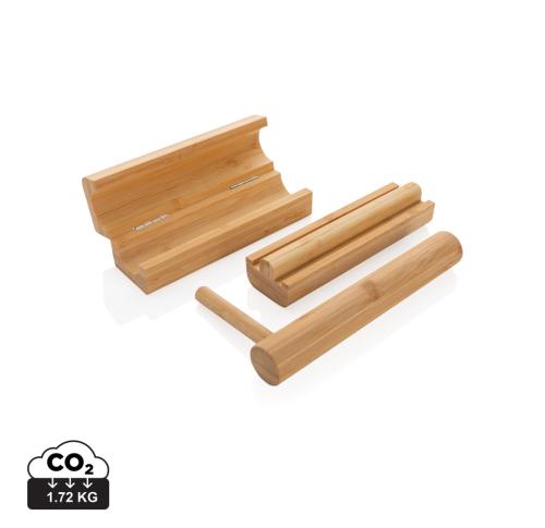 The Ukiyo bamboo sushi making set is easy to use and perfect for making the tastiest sushi at home. In a few simple steps you can make the most beautiful sushi rolls with your favorite ingredients. Made of 100% bamboo. Handwash only. Comes in kraft gift box.