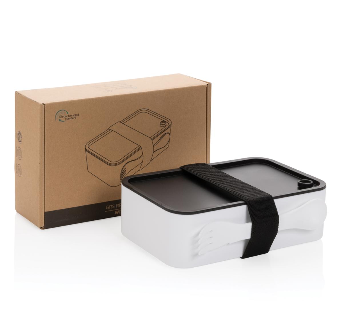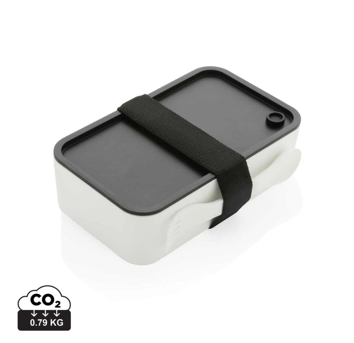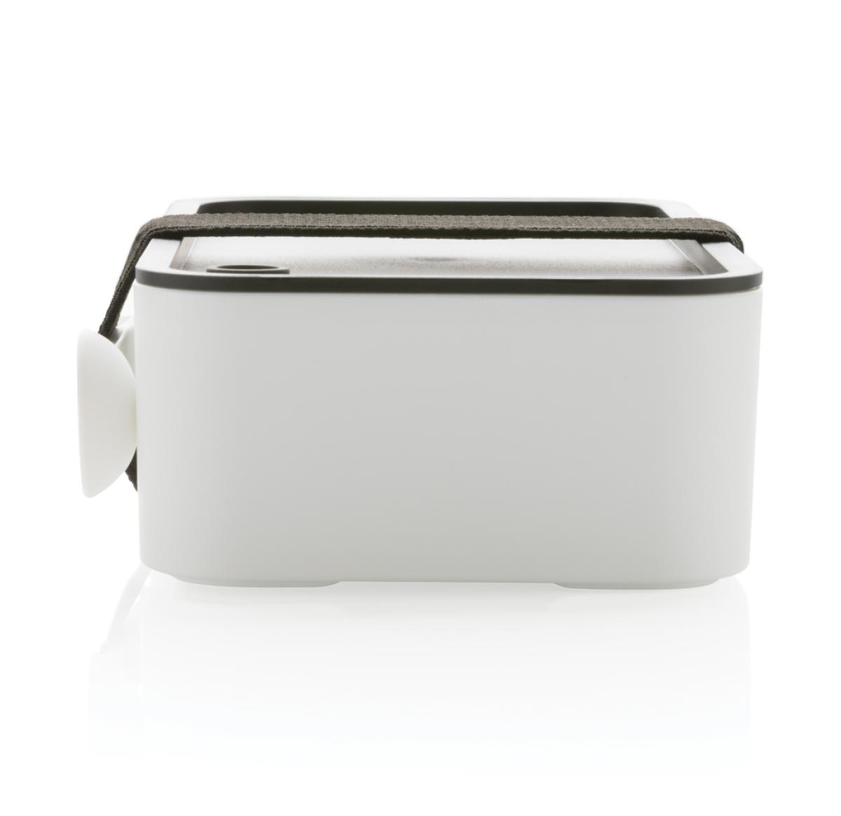 This stylish and sturdy lunchbox fits perfectly with a healthy lifestyle! It is big enough for carrying sandwiches and delicious salads, but also for heating up your warm meals. Made with 93% GRS certified recycled PP, GRS certification ensures a completely certified supply chain of the recycled materials. Dishwasher and microwave safe. Including a handy spork and elastic strap. Capacity 1.2 litre.