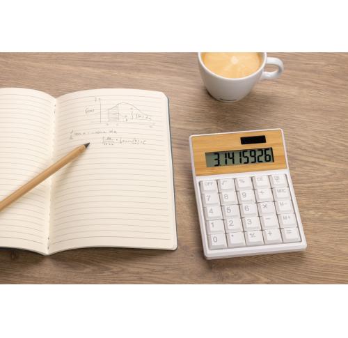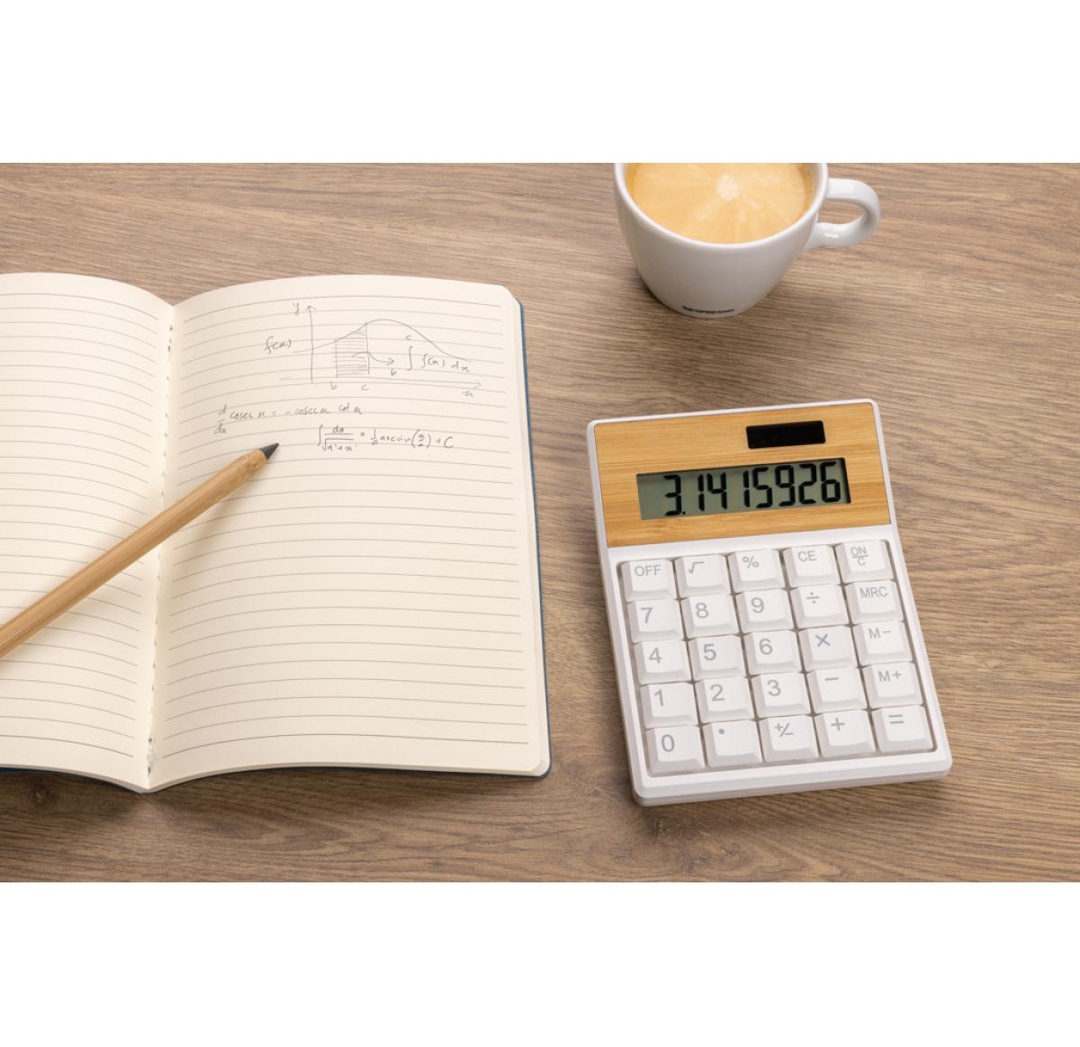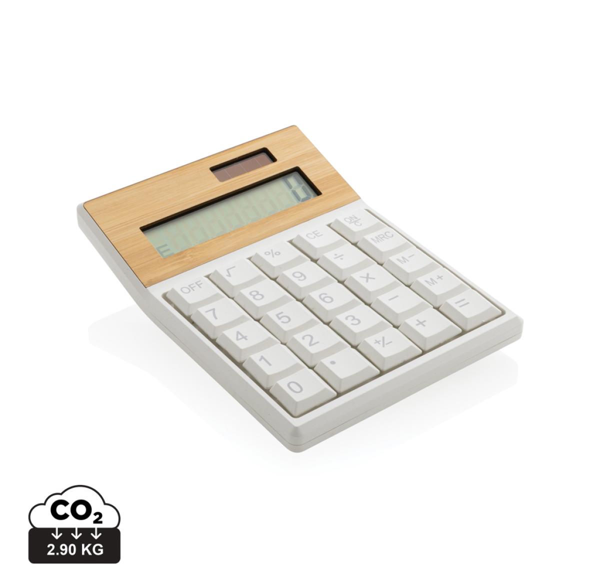 8 digit calculator made with RCS (Recycled Claim Standard) certified recycled ABS and FSC?? 100% bamboo. Total recycled content: 74 % based on total item weight. RCS certification ensures a completely certified supply chain of the recycled materials. With solar for re-charging and cell batteries for direct use.