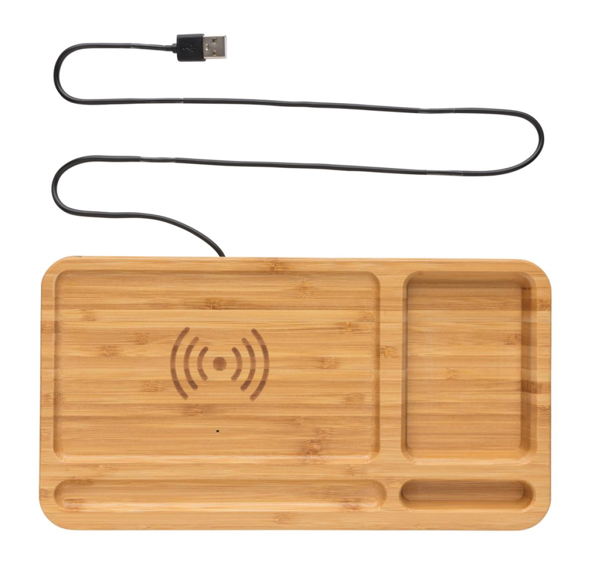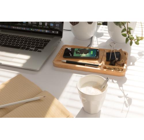 Bamboo Desk Organiser 10W Wireless Charger