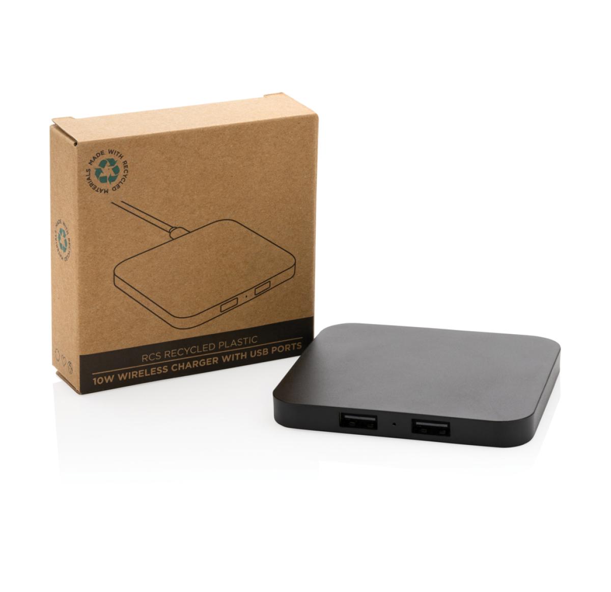RCS Recycled Plastic 10W Wireless Charger With USB Ports