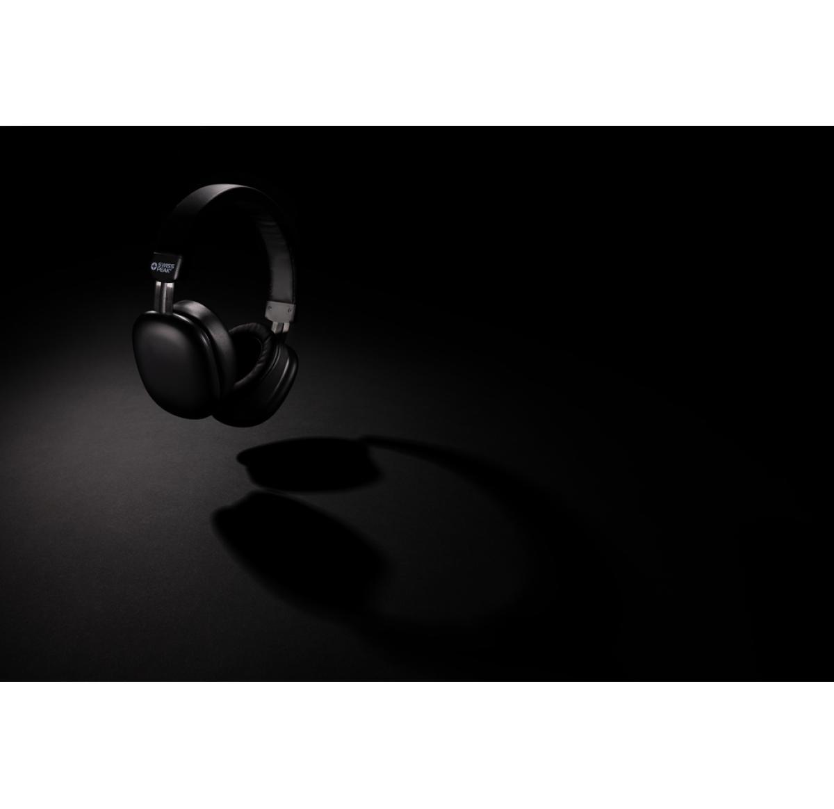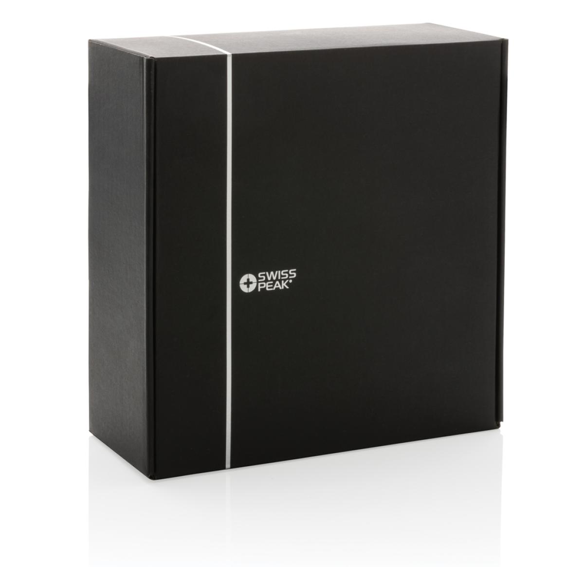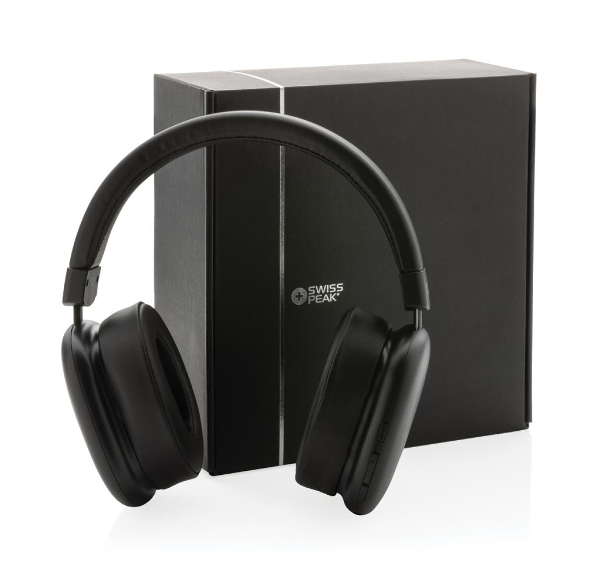 High quality over ear headphone with a deep bass and comfortable ear pads. The headphone comes with energy efficient BT 5.3 module delivering play time up to 70 hours on one single charge. With integrated 500 mAh battery that is fully re-charged in under 3 hours via type C. Comes with a Swiss Peak string pouch to carry the items anywhere you go. Including 120 cm PVC free AUX cable. With mic and pick up function to answer calls. PU material headband and ABS earcups. Packed in plastic free packaging.