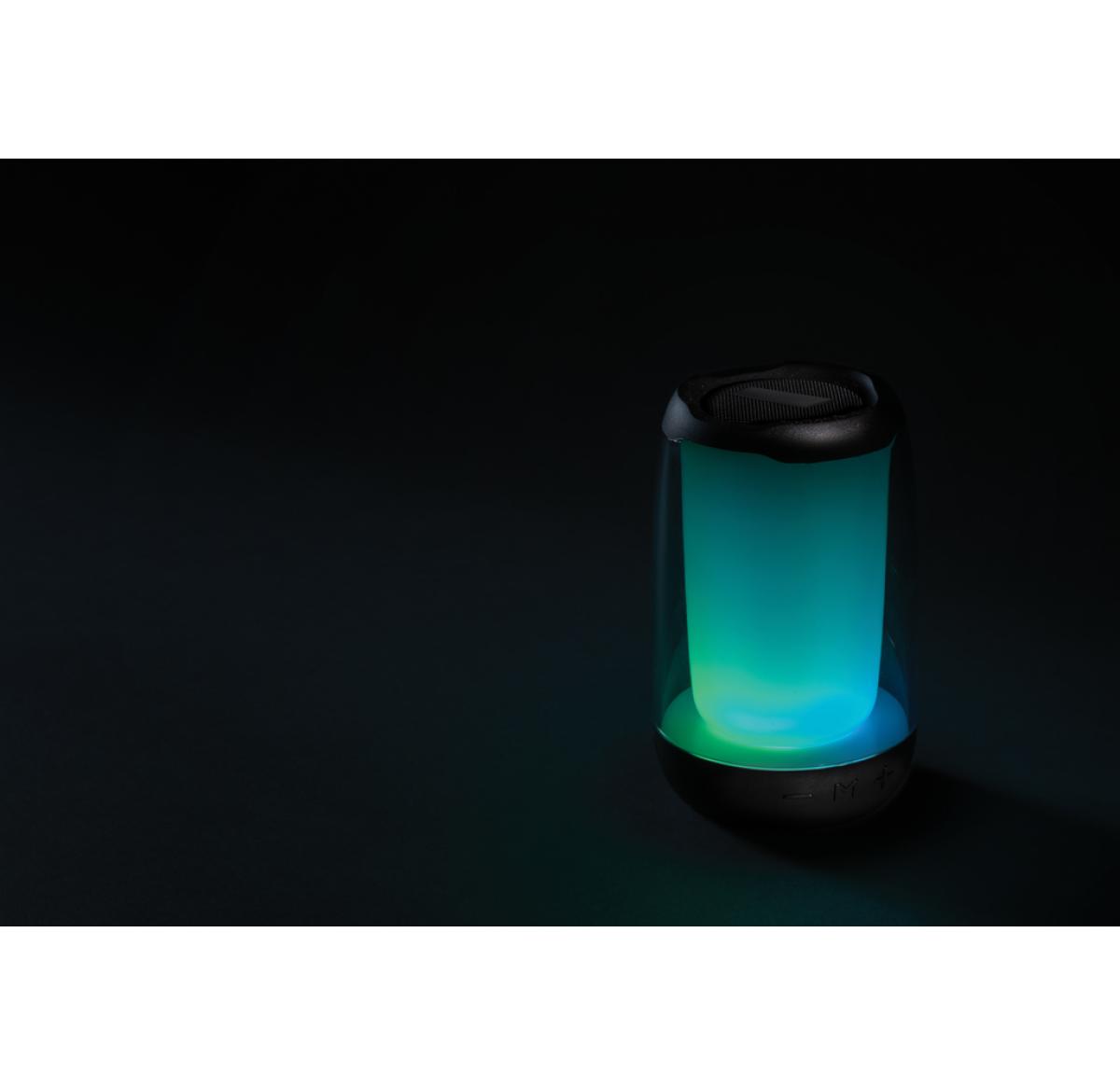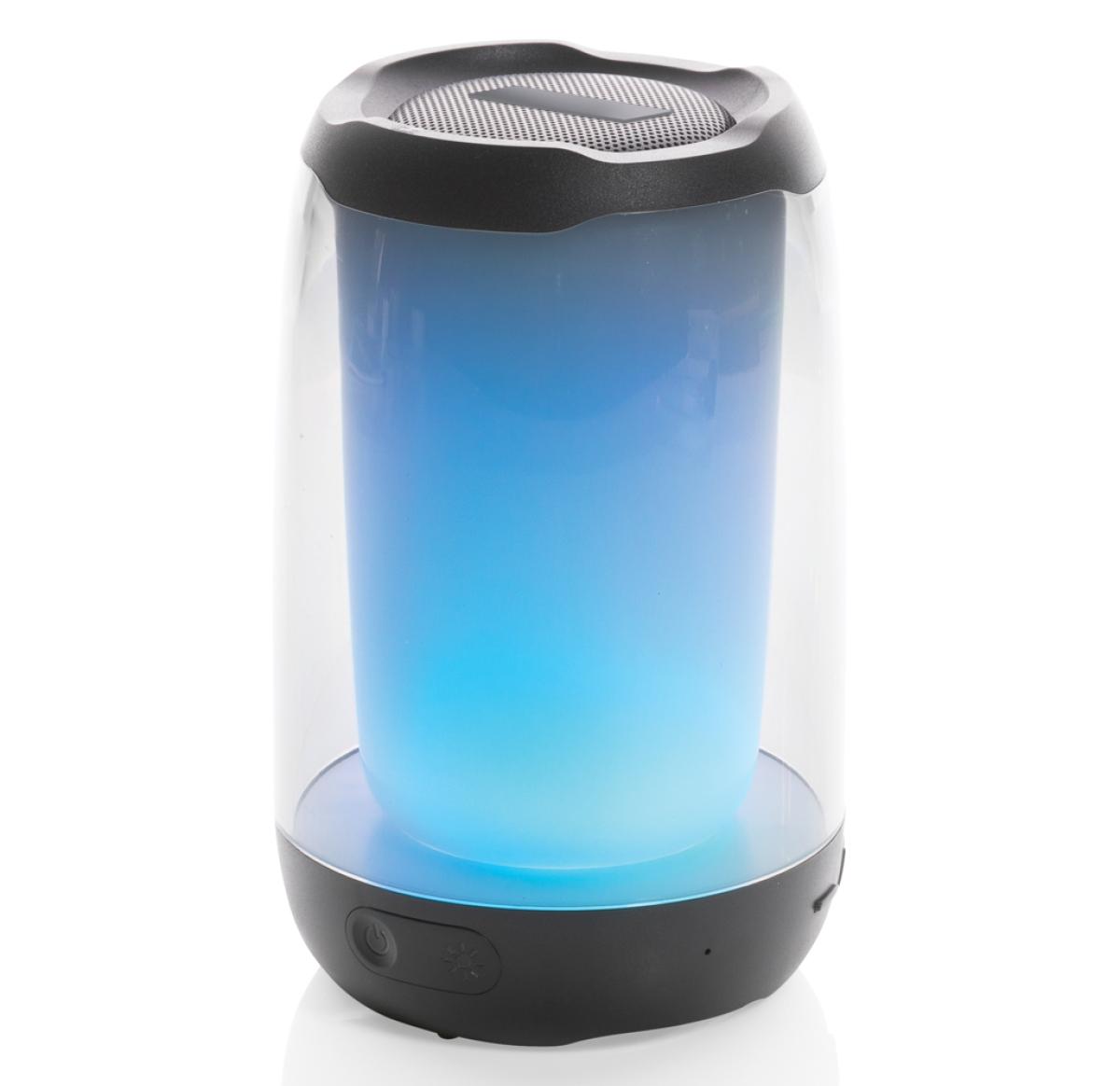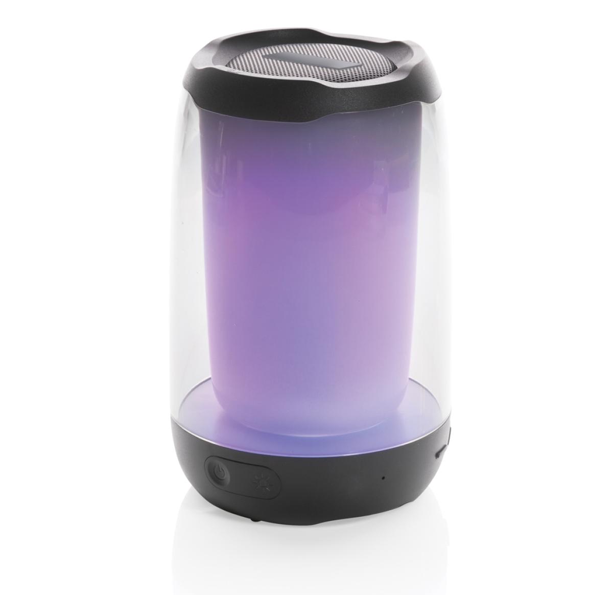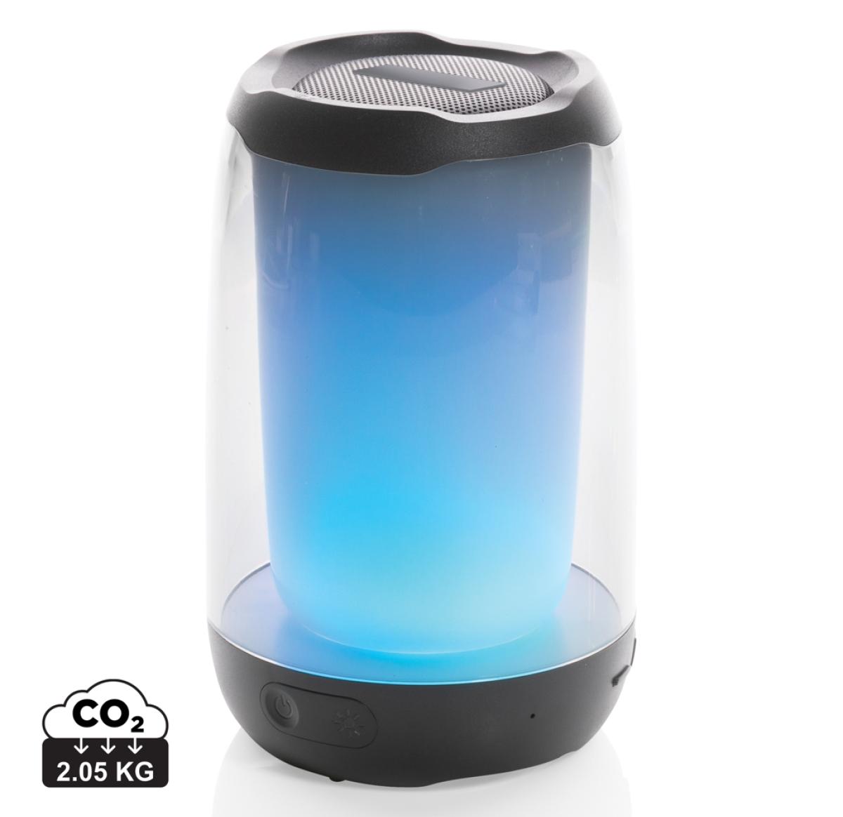 Powerful 5W wireless speaker with dazzling 360 degrees RGB LED lights. Lightboom will shine bright throughout the whole night. Super clear sound in each direction due to its unique design. Casing made from RCS standard recycled ABS/PS plastic. Total recycled content: 33% based on total item weight. With 1200 mAh lithium battery for a play time up to 5 hours. Re-charging is done in 4 hours. With integrated MIC to answer calls. With integrated TF slot, AUX in port and USB port. Comes with BT 5.0 for smooth operation up to 10 metres. Including PVC free recycled TPE material charging cable. Item and accessories 100% PVC free. Packed in FSC mix packaging.