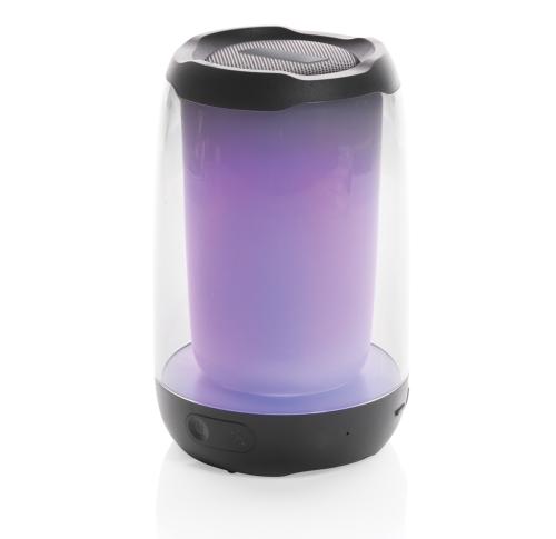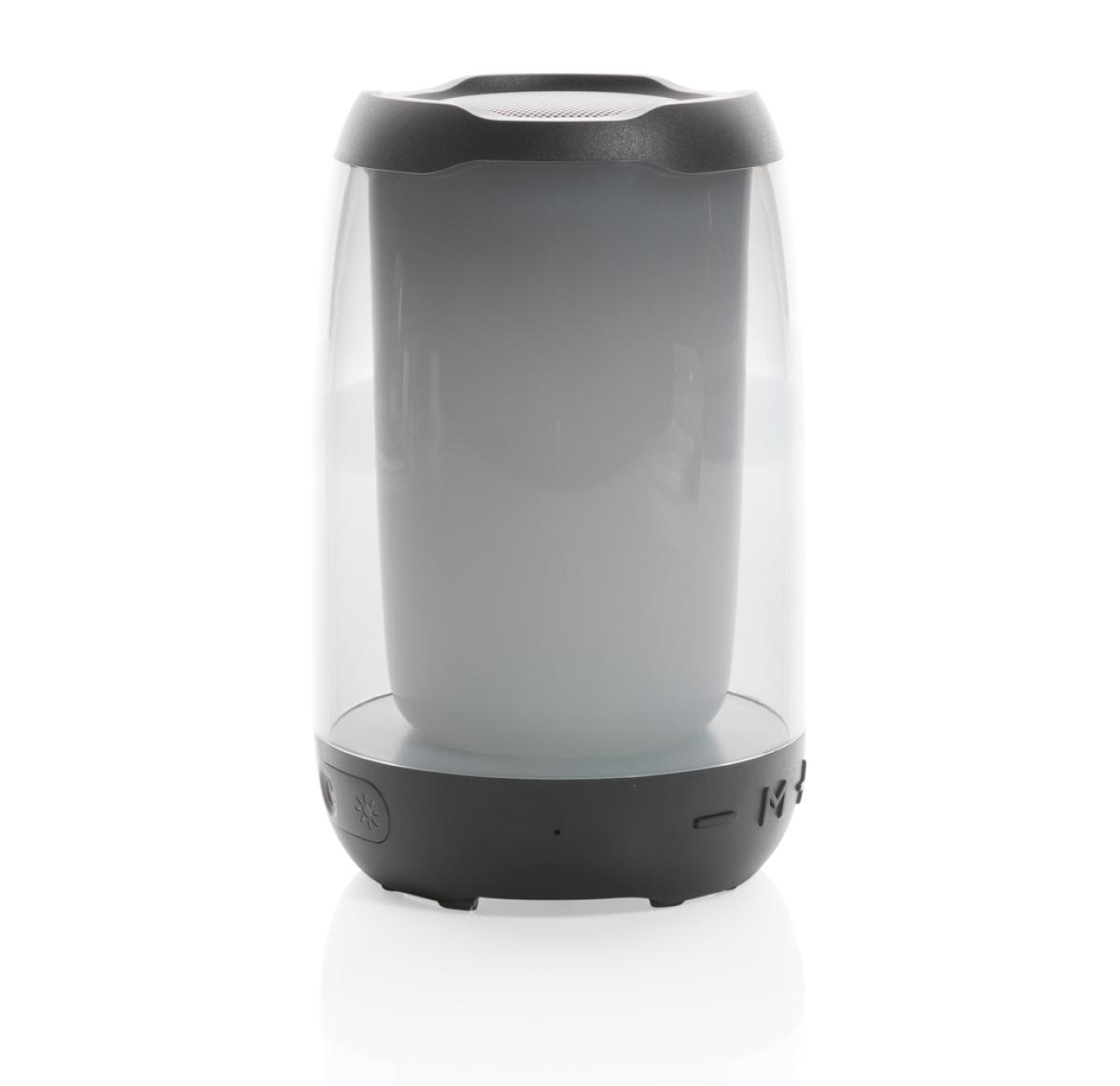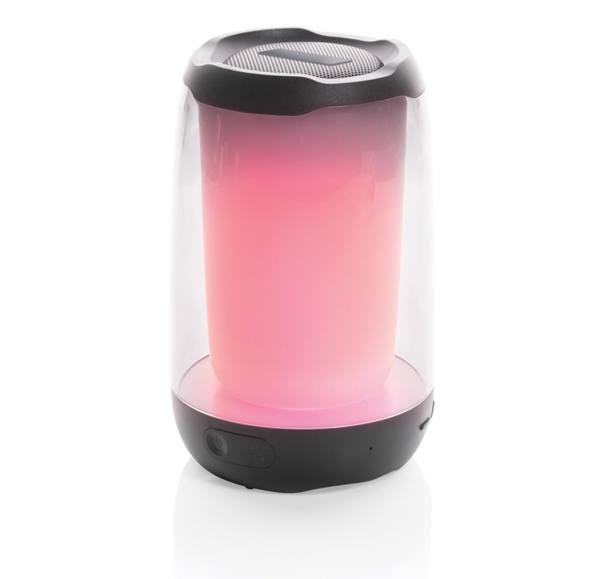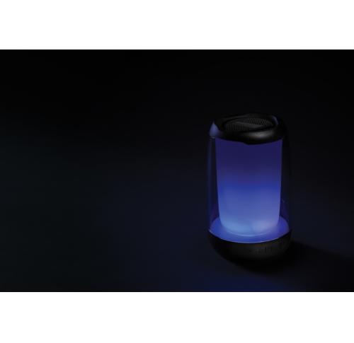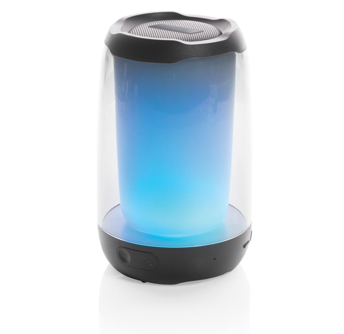 Powerful 5W wireless speaker with dazzling 360 degrees RGB LED lights. Lightboom will shine bright throughout the whole night. Super clear sound in each direction due to its unique design. Casing made from RCS standard recycled ABS/PS plastic. Total recycled content: 33% based on total item weight. With 1200 mAh lithium battery for a play time up to 5 hours. Re-charging is done in 4 hours. With integrated MIC to answer calls. With integrated TF slot, AUX in port and USB port. Comes with BT 5.0 for smooth operation up to 10 metres. Including PVC free recycled TPE material charging cable. Item and accessories 100% PVC free. Packed in FSC mix packaging.