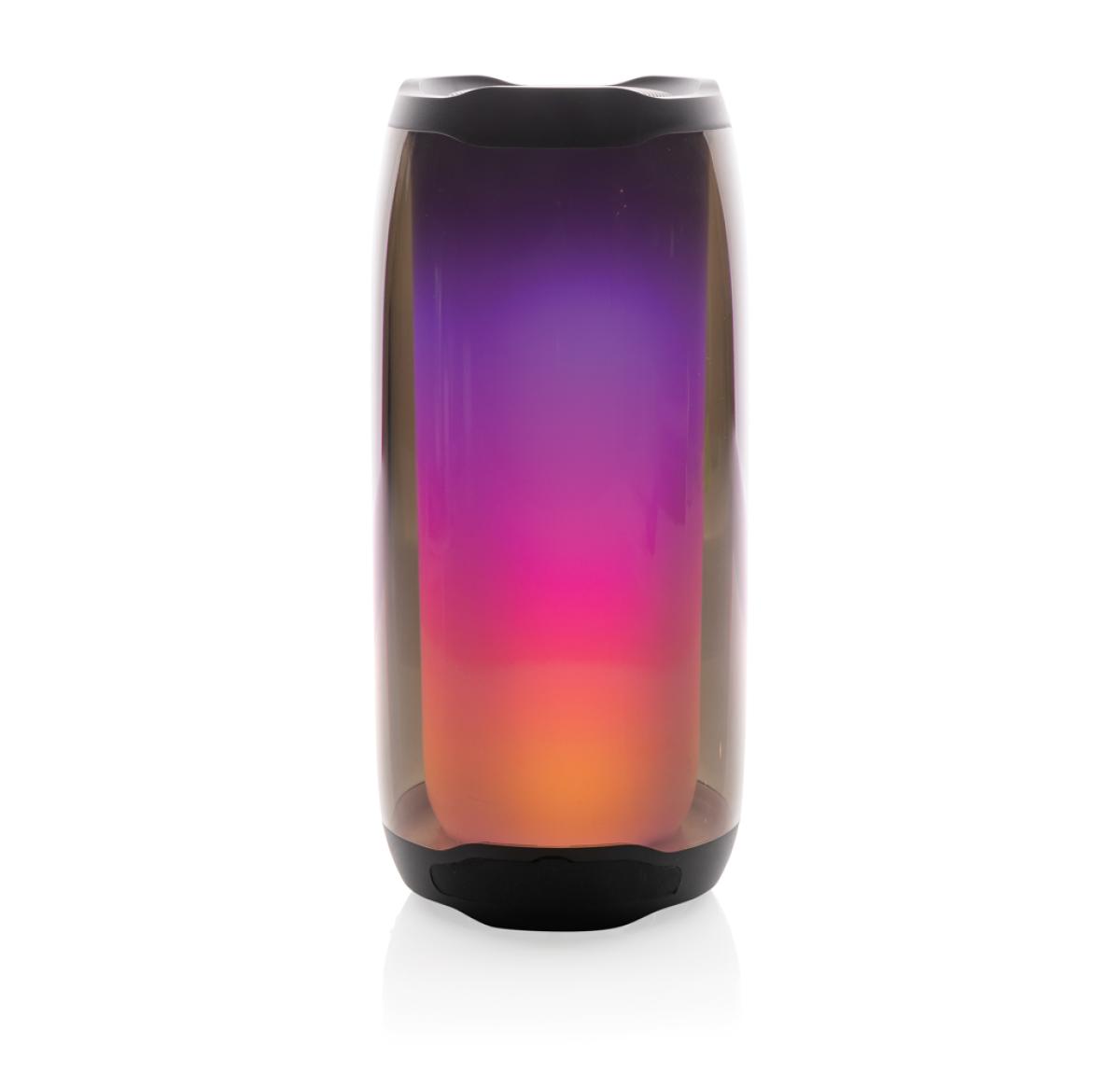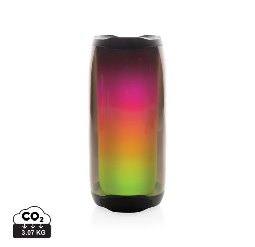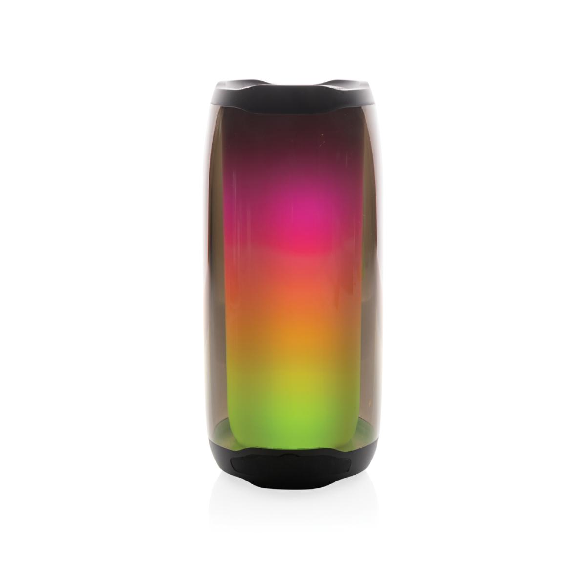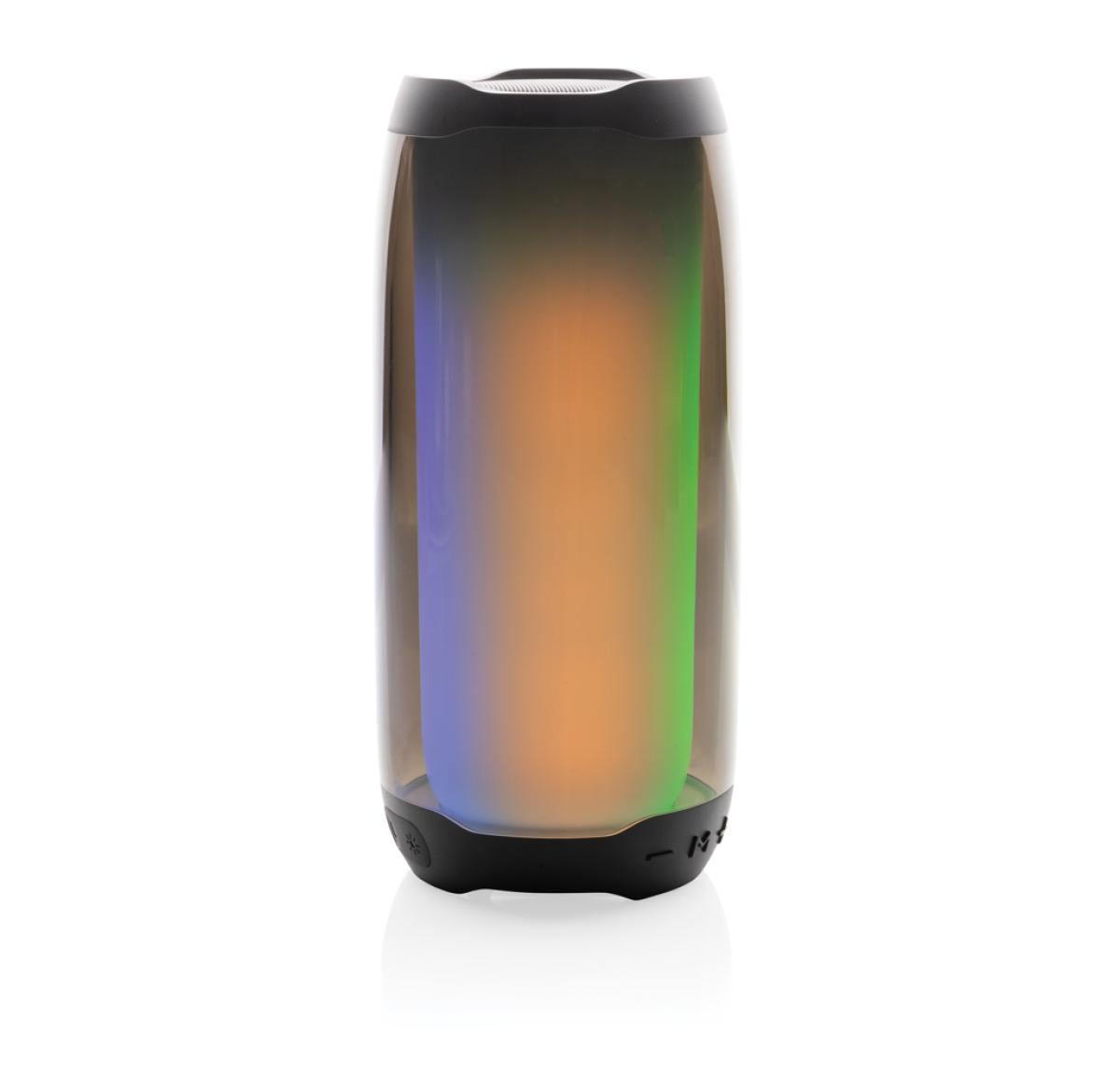 Powerful 10W wireless speaker with dazzling 360 degrees RGB LED lights. Lightboom will shine bright throughout the whole night. Super clear sound in each direction due to its unique design. Casing made from 100% RCS standard recycled ABS/PS plastic. Total recycled content: 39% based on total item weight. With 1800 mAh lithium battery for a play time of up to 6 hours. Re-charging is done in 4 hours. With integrated MIC to answer calls. With integrated TF slot, AUX in port and USB port. Comes with BT 5.0 for smooth operation up to 10 metres. Including PVC free recycled TPE material charging cable. Item and accessories 100% PVC free. Packed in FSC mix packaging.
