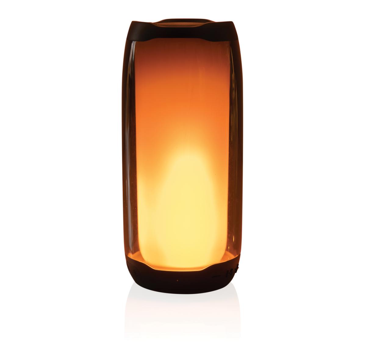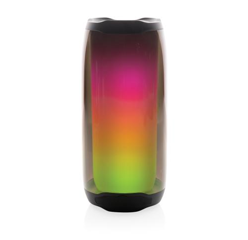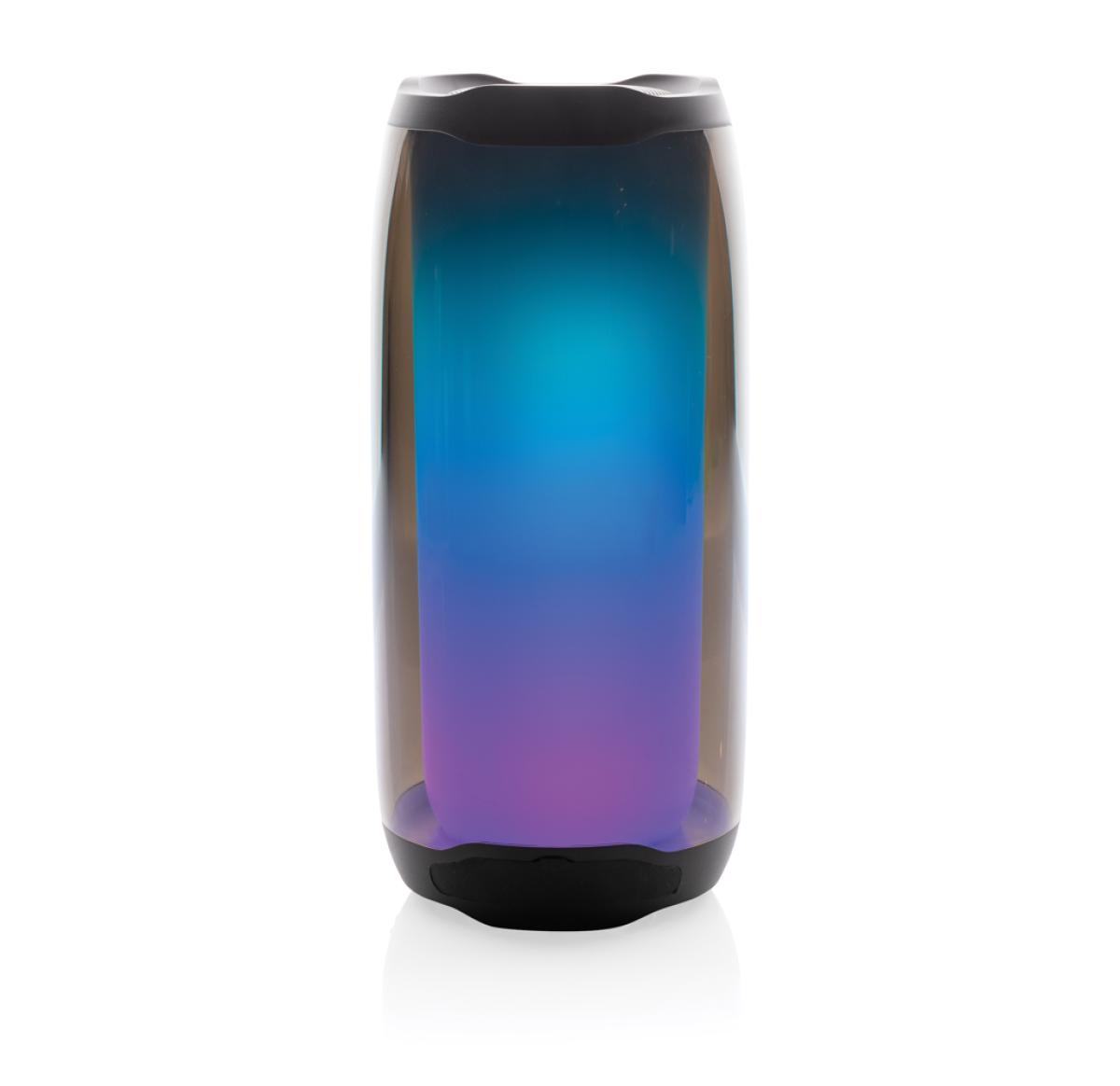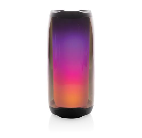 Powerful 10W wireless speaker with dazzling 360 degrees RGB LED lights. Lightboom will shine bright throughout the whole night. Super clear sound in each direction due to its unique design. Casing made from 100% RCS standard recycled ABS/PS plastic. Total recycled content: 39% based on total item weight. With 1800 mAh lithium battery for a play time of up to 6 hours. Re-charging is done in 4 hours. With integrated MIC to answer calls. With integrated TF slot, AUX in port and USB port. Comes with BT 5.0 for smooth operation up to 10 metres. Including PVC free recycled TPE material charging cable. Item and accessories 100% PVC free. Packed in FSC mix packaging.