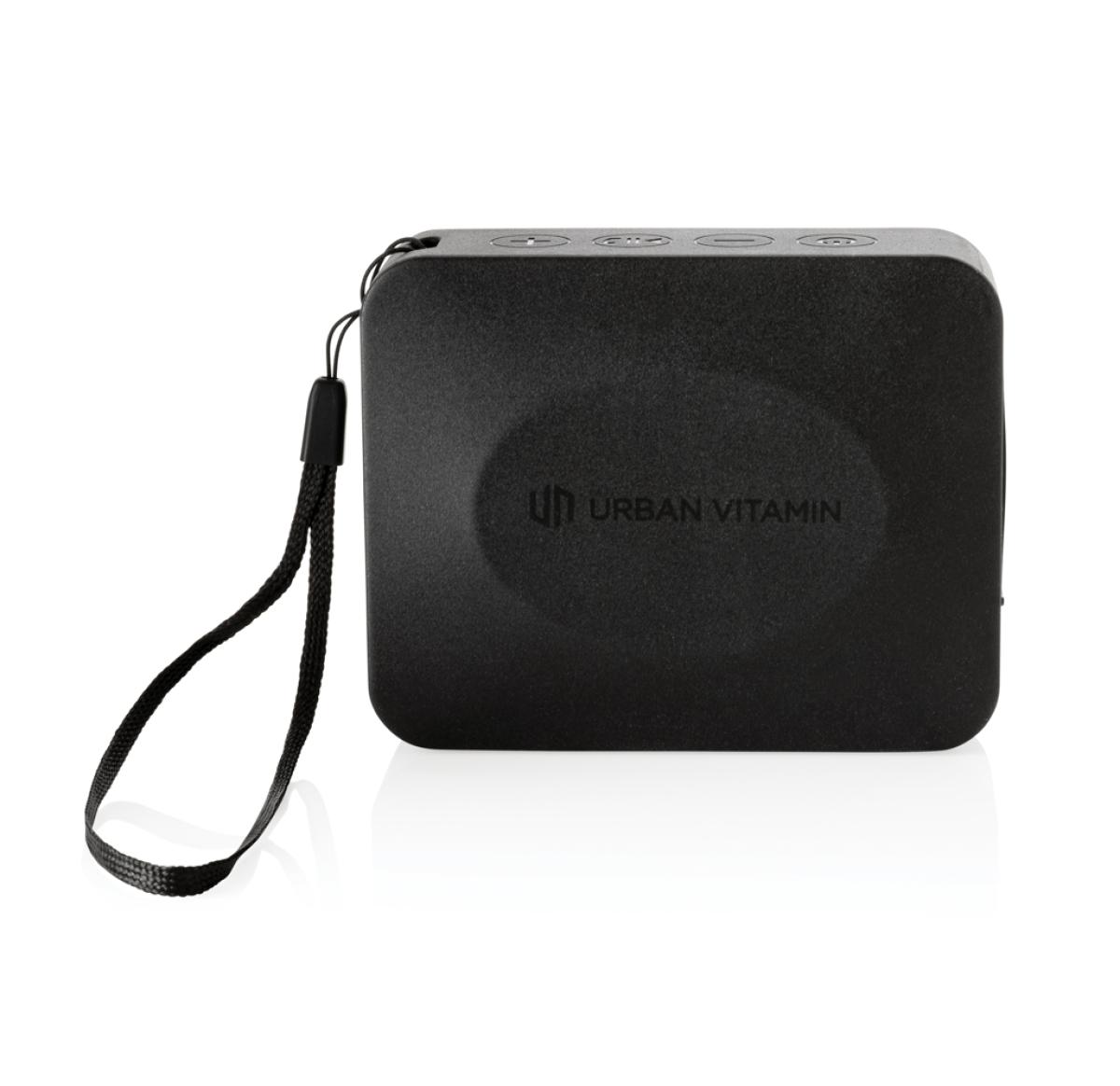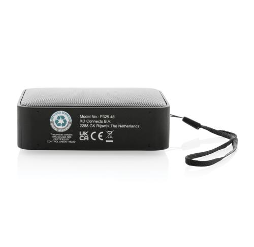 Pocket size and powerful 3W wireless speaker made with RCS (Recycled Claim Standard) certified recycled ABS Total recycled content: 49 % based on total item weight. RCS certification ensures a completely certified supply chain of the recycled materials. This awesome speaker is IPX 7 so can resist any water and makes it perfect for the beach or swimming pool. The speaker uses BT5.1 that allows up to 6 hours play time. Urban Vitamin items are made without PVC and packed in plastic reduced packaging. Including type C charging cable made from RCS certified recycled TPE.