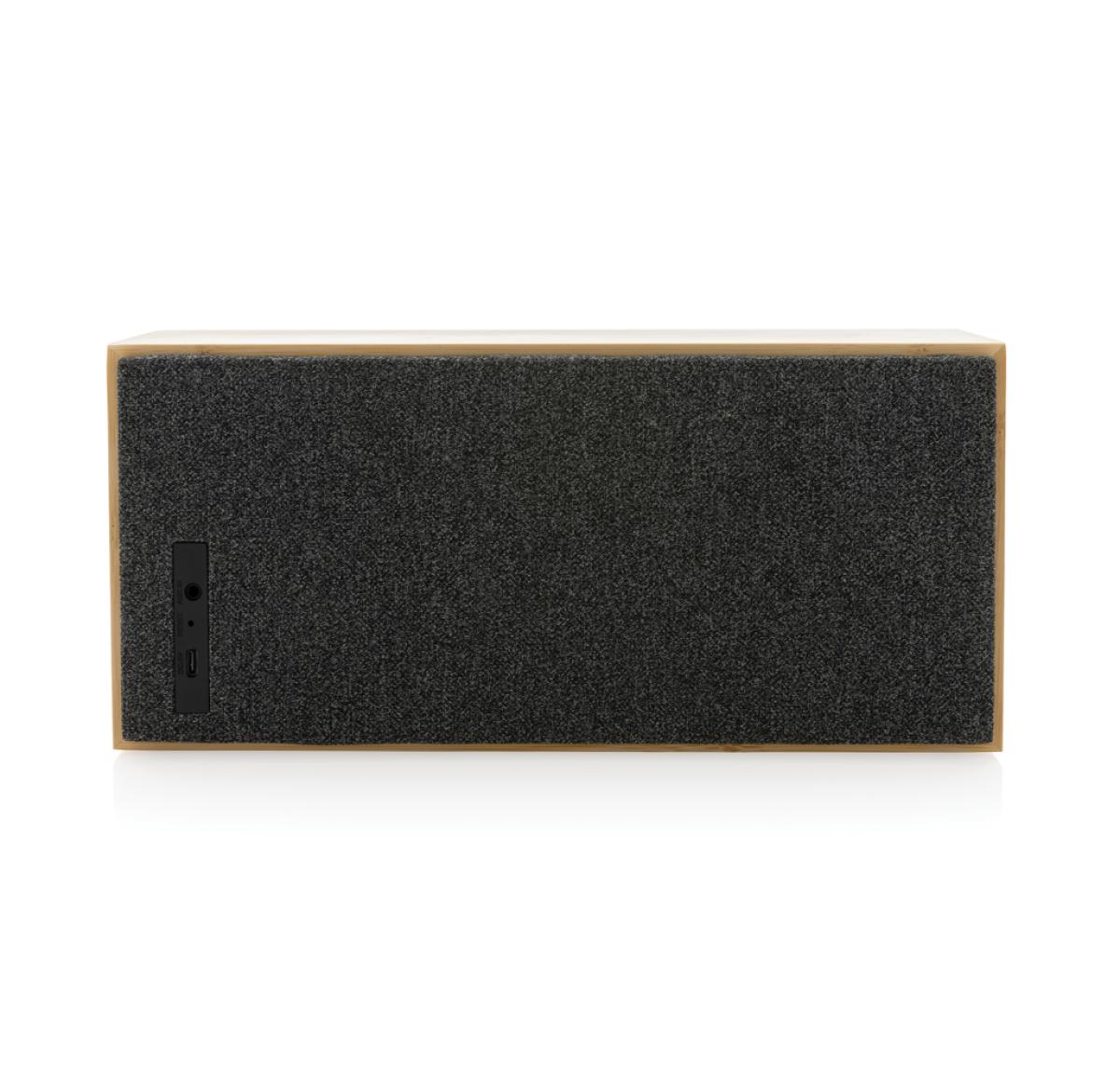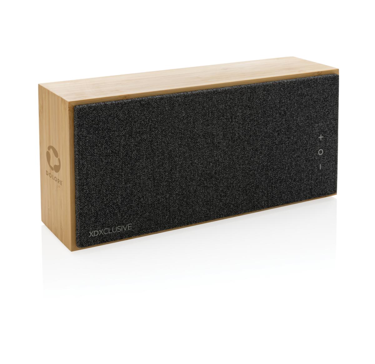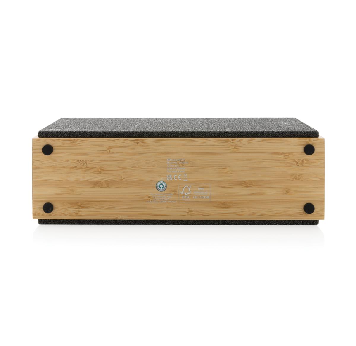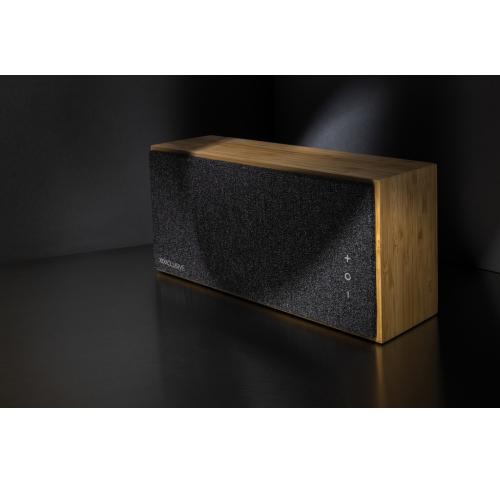 Luxury and powerful 20W speaker with clear sound and strong bass. The outer casing is made from FSC 100% certified bamboo. The plastic components are made with RCS (Recycled Claim Standard) certified recycled ABS. Total recycled content: 17 % based on total item weight. RCS certification ensures a completely certified supply chain of the recycled materials. The speaker comes with BT 5.1 for easy and smooth operation up to 10 metres and low power consumption. The 1200 mah battery allows a playtime up to 6 hours and can be fully re-charged in 3 hours. With pick up function and mic to answer (video) calls. Packed in FSC mix kraft box. Including RCS certified recycled TPE charging cable.