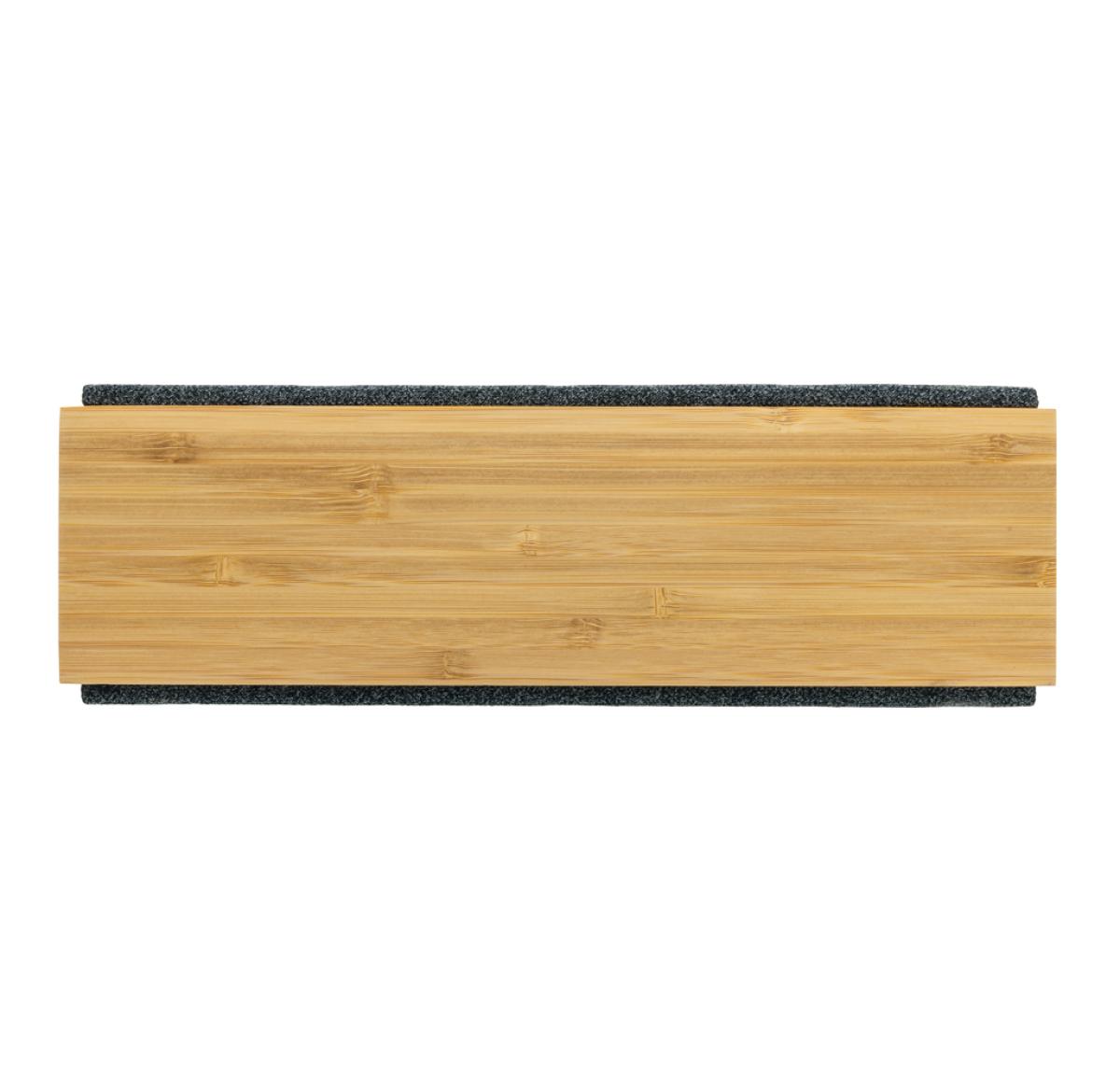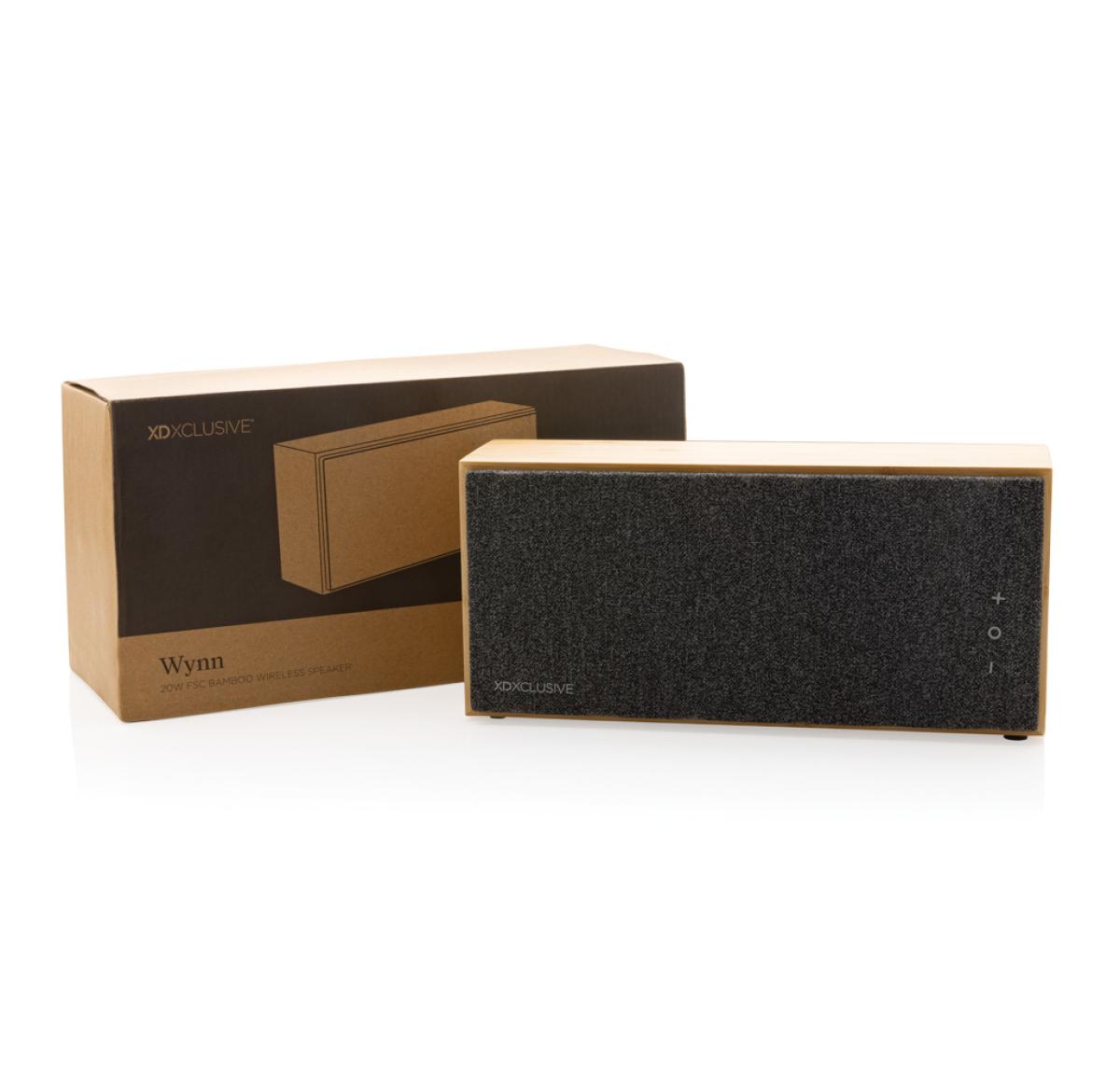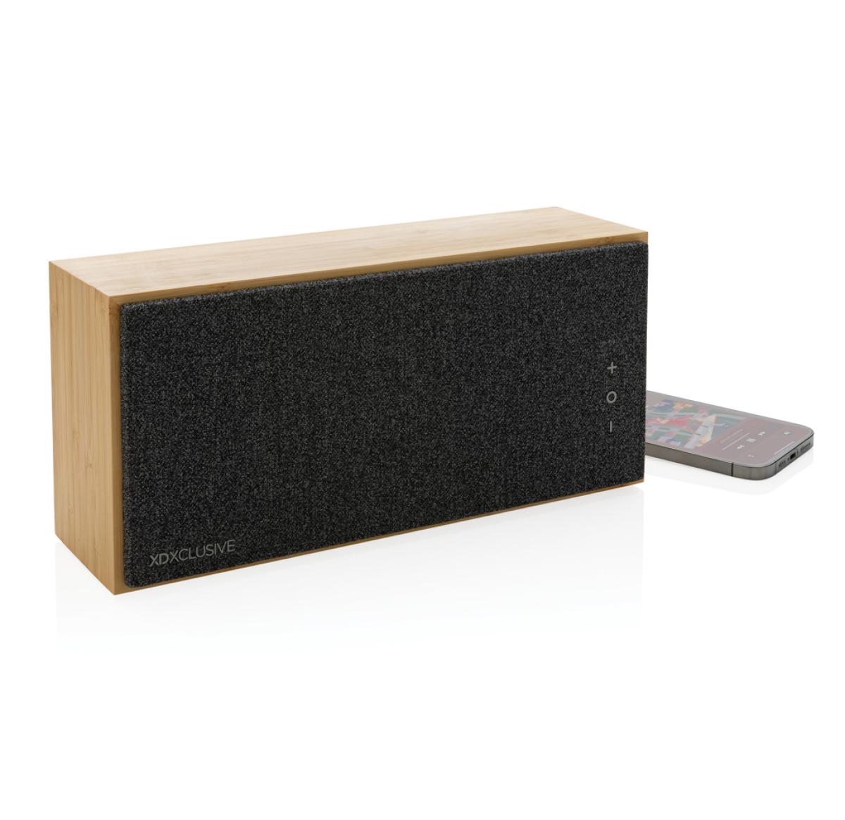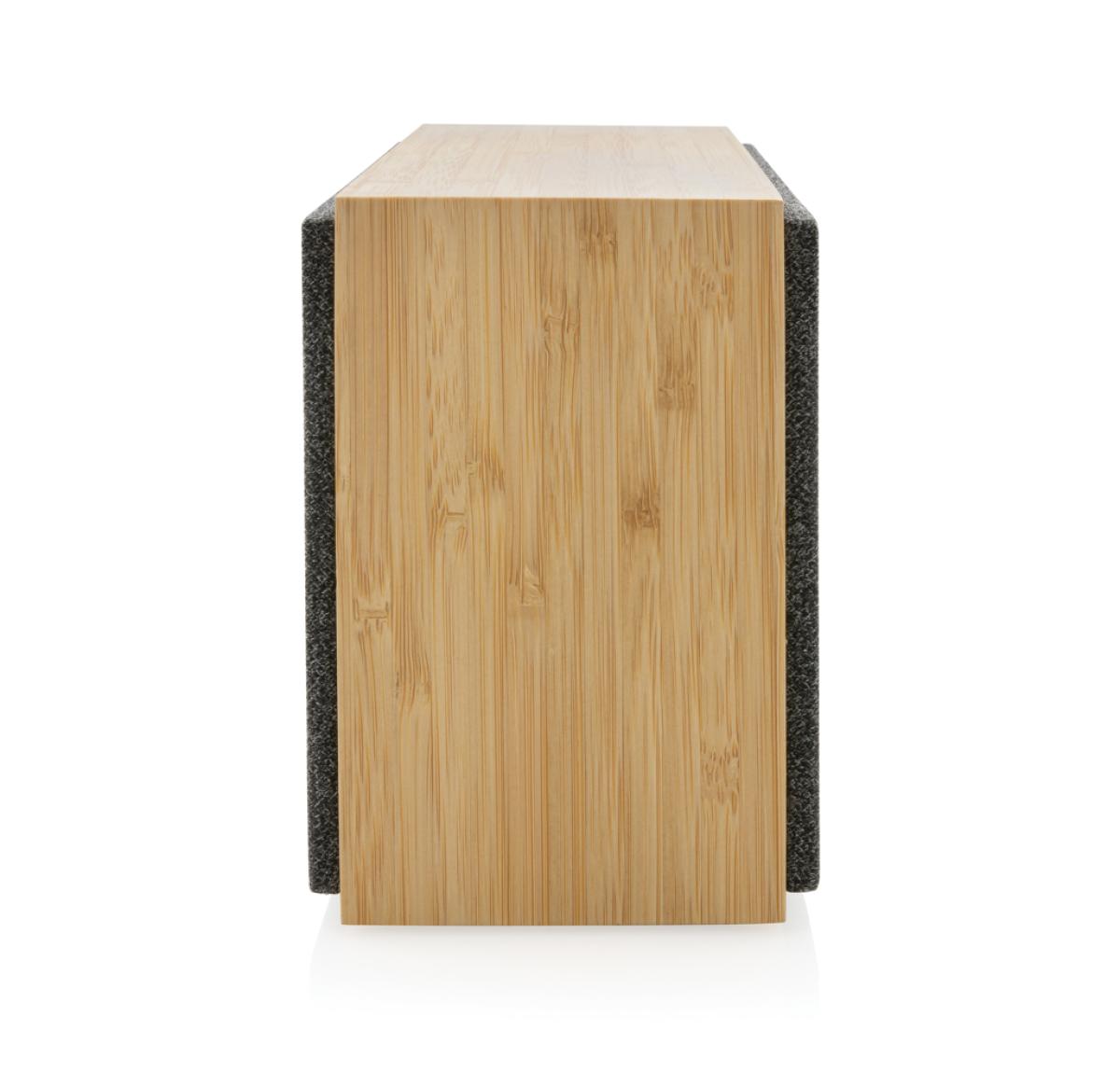 Luxury and powerful 20W speaker with clear sound and strong bass. The outer casing is made from FSC 100% certified bamboo. The plastic components are made with RCS (Recycled Claim Standard) certified recycled ABS. Total recycled content: 17 % based on total item weight. RCS certification ensures a completely certified supply chain of the recycled materials. The speaker comes with BT 5.1 for easy and smooth operation up to 10 metres and low power consumption. The 1200 mah battery allows a playtime up to 6 hours and can be fully re-charged in 3 hours. With pick up function and mic to answer (video) calls. Packed in FSC mix kraft box. Including RCS certified recycled TPE charging cable.