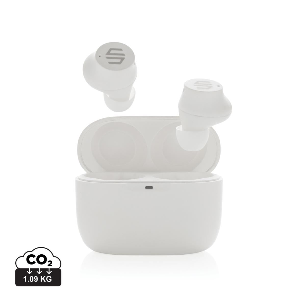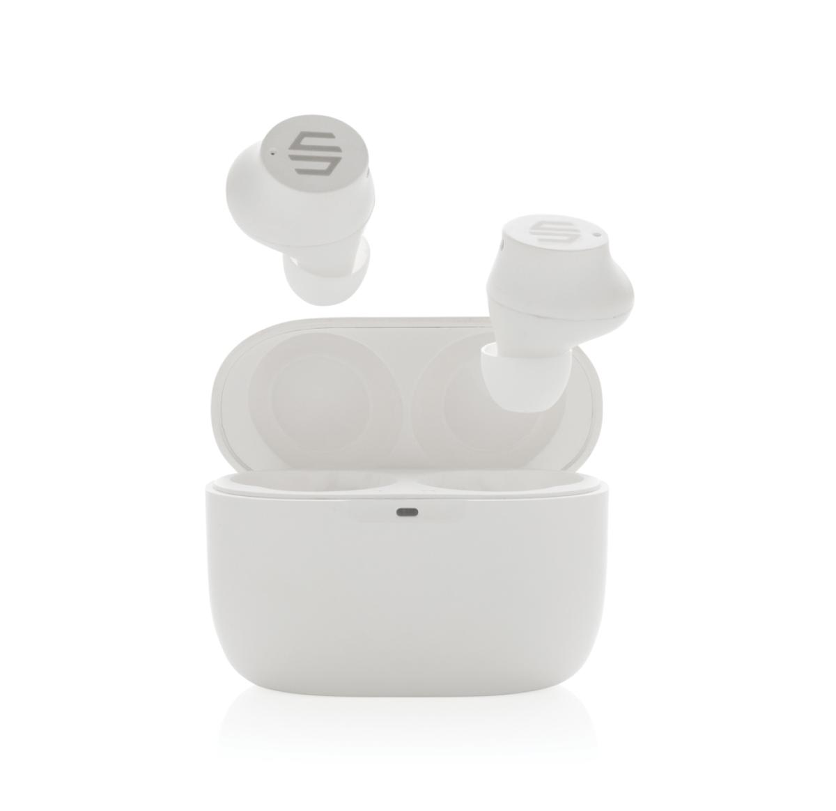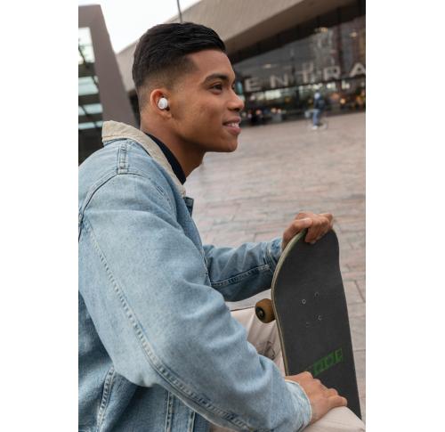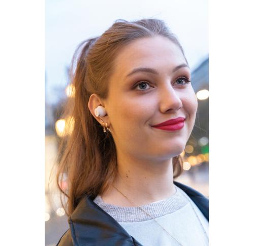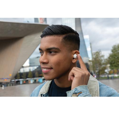 When you open the case and put in the earbuds, the intense bass hits you. How can an item so compact and portable deliver such rich and deep sound? The earbuds and portable charging case are designed to be able to carry no matter where you go and fit easily into your pocket. The comfortable earbuds have up to 5 hours of listening time and the charging case allows up to 20 hours of playback. Enough to keep you going all day! When receiving a call simply answer it in stereo sound thanks to the 2 integrated microphones. With the integrated touch control function you only have to tap the earbud to answer in crystal clear quality. The IPX 5 rating makes the earbuds weather, sweat and splash proof so no worries to take them outside. Urban Vitamin items are made without PVC and packed in plastic reduced packaging.