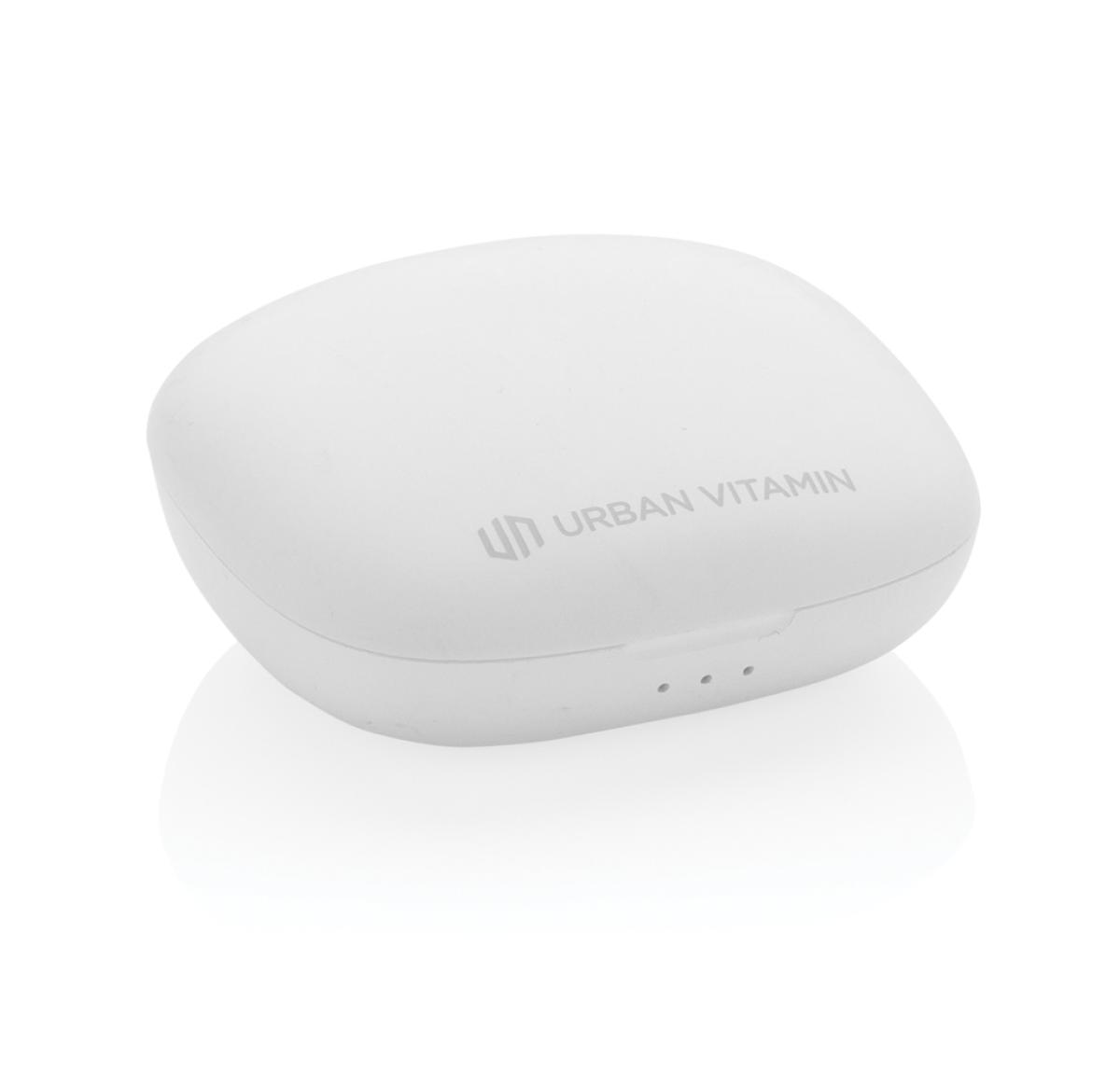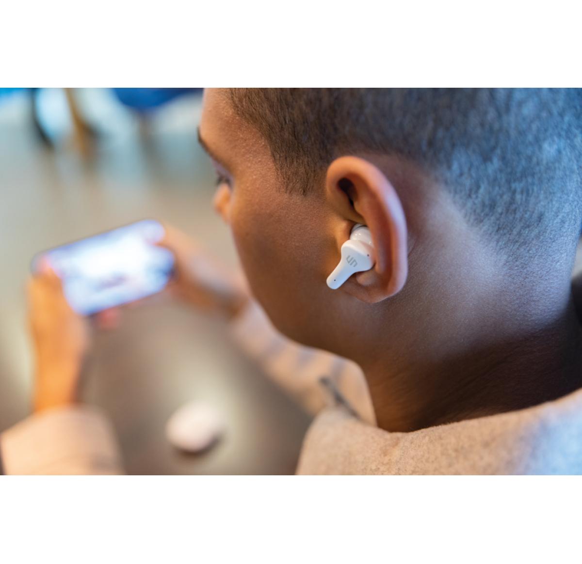Go truly wireless with these compact but powerful earbuds. The earbuds come with low latency gaming mode (65 MS) to minimise the sound delay between your screen and the audio when playing games. Thanks to environment noise cancelling (ENC) your phone calls are crystal clear by filtering away noise from the environment during your call. No more questions to repeat what you just said. Thanks to the touch control function you only have to tap the earbud to answer. The comfortable earbuds have up to 5 hours of listening time and the pocket size charging case allows up to 18 hours of playback. The IPX 4 rating makes the earbuds weather and sweat proof so no worries to take them outside. Urban Vitamin items are made without PVC and packed in plastic reduced packaging.