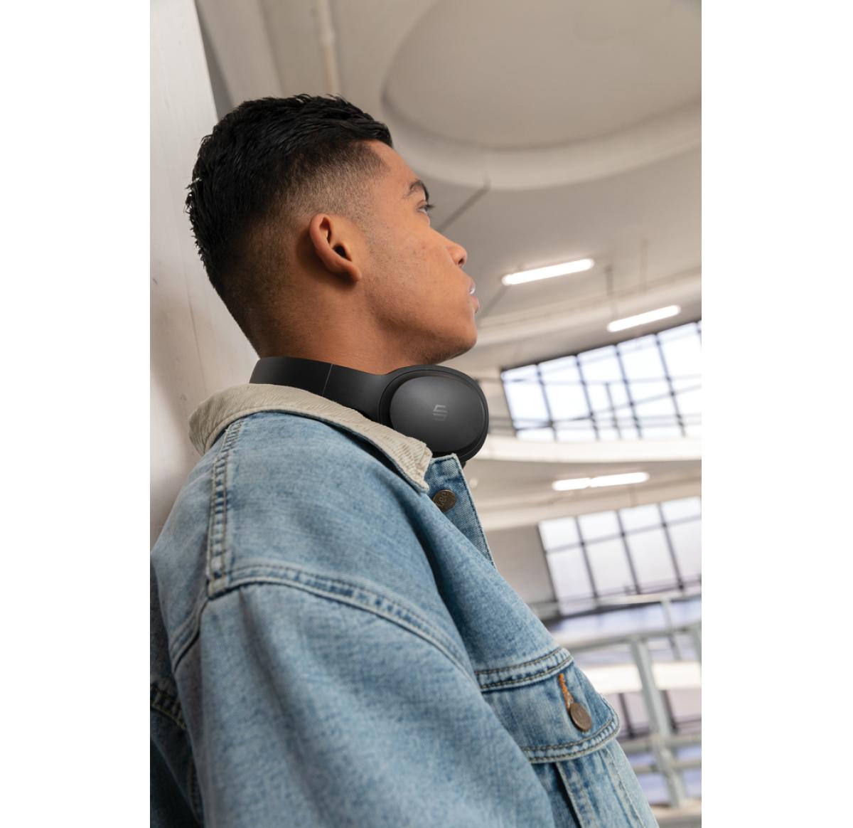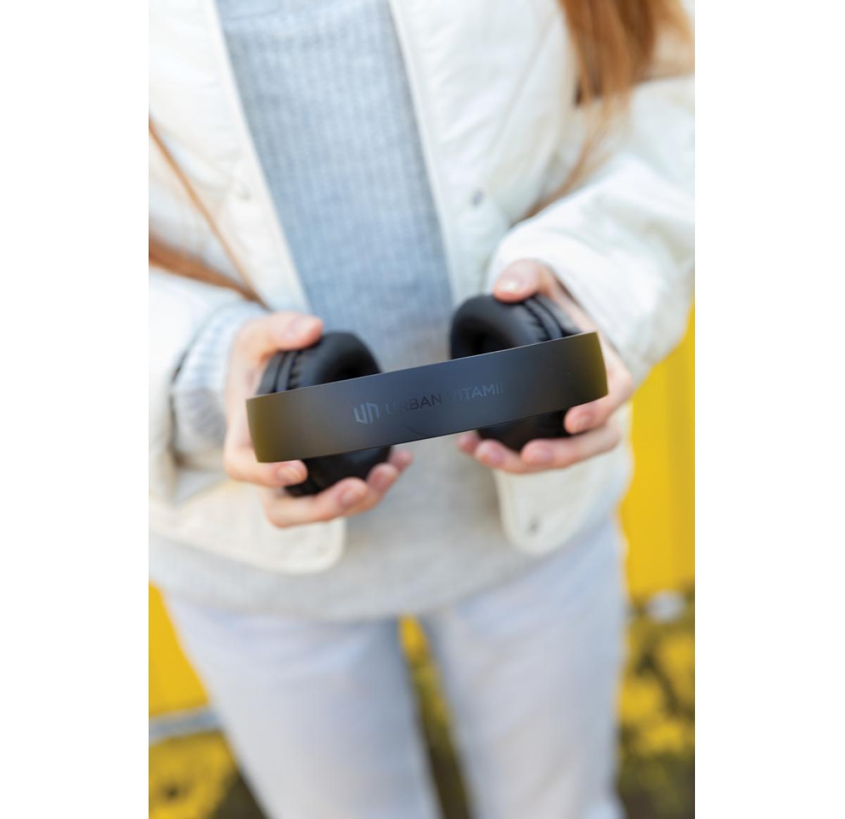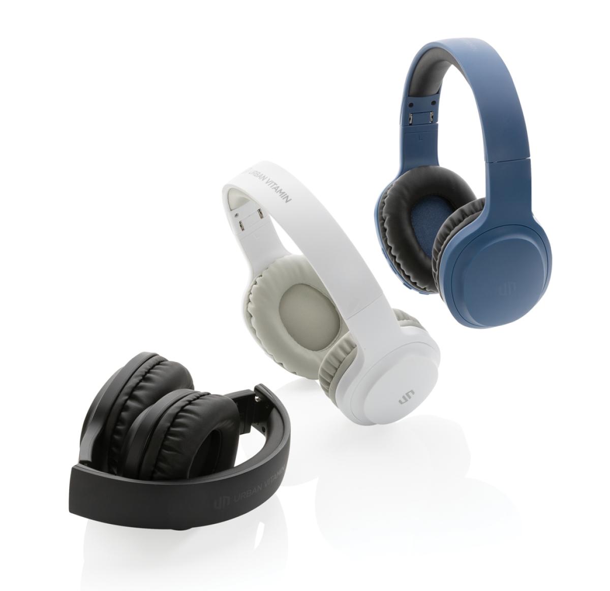 The bass, you don't just hear it, you feel it. Press the bass button on the side of the headphone to get an extra boost. Lose yourself in the rich and clear sound. This is the ultimate all day headphone with an impressive 35 hour play time. The sleek, streamlined over-ear design makes this headphone perfect to wear all day. Fold the headphone into a portable size to bring it along with you in your bag or even your jacket pocket. If someone calls you simply answer it with the integrated mic. Urban Vitamin items are made without PVC and packed in plastic reduced packaging.