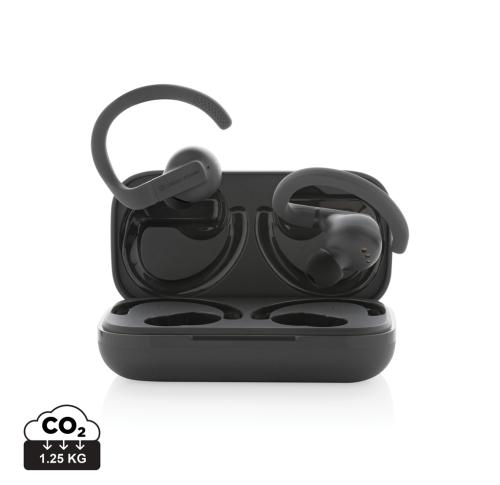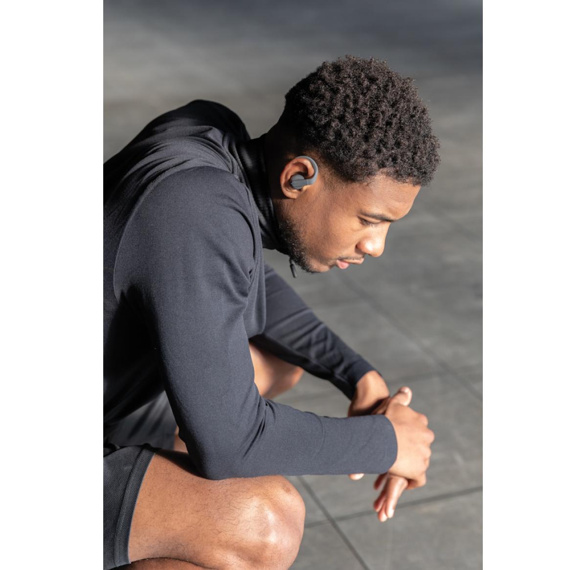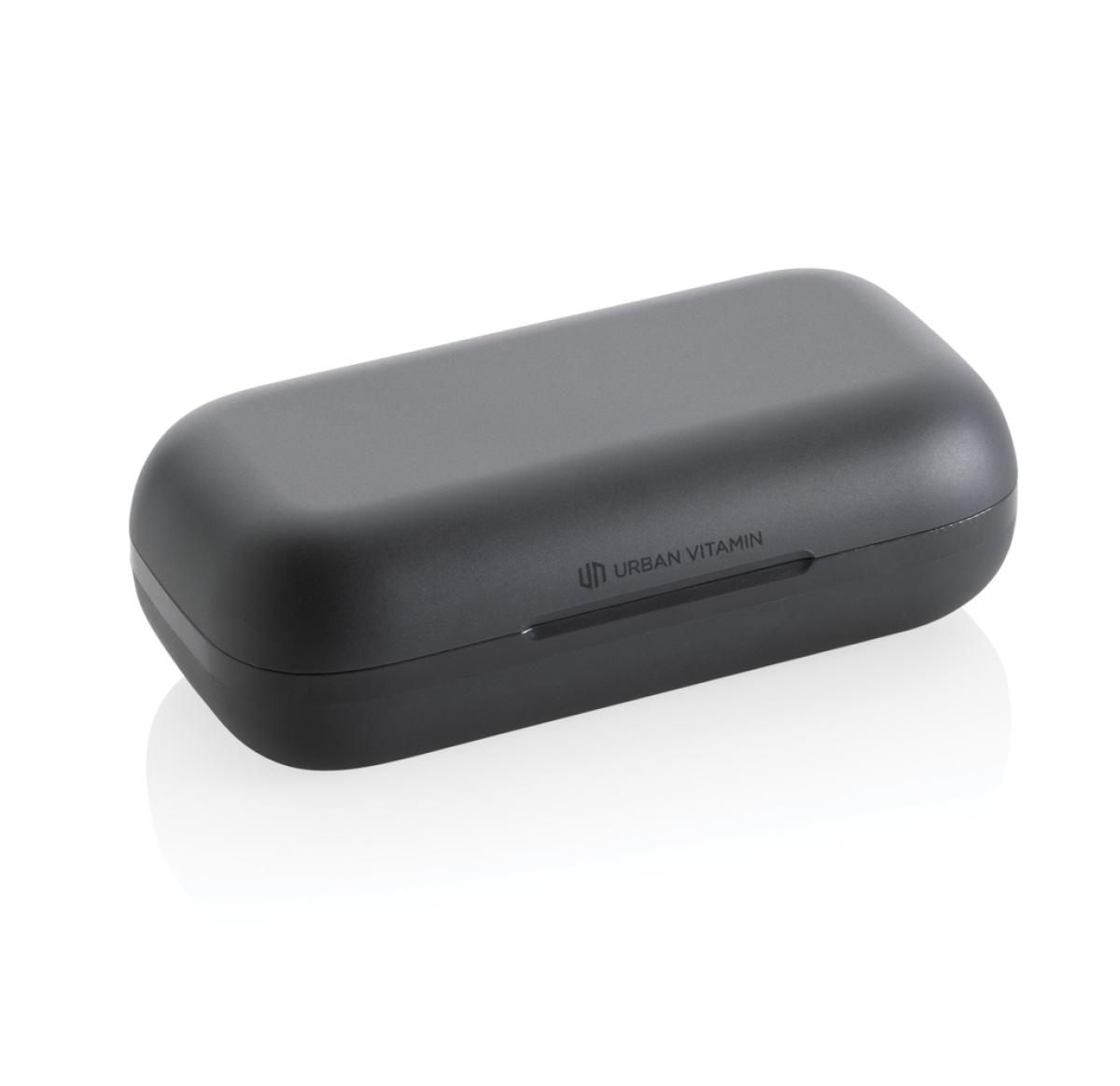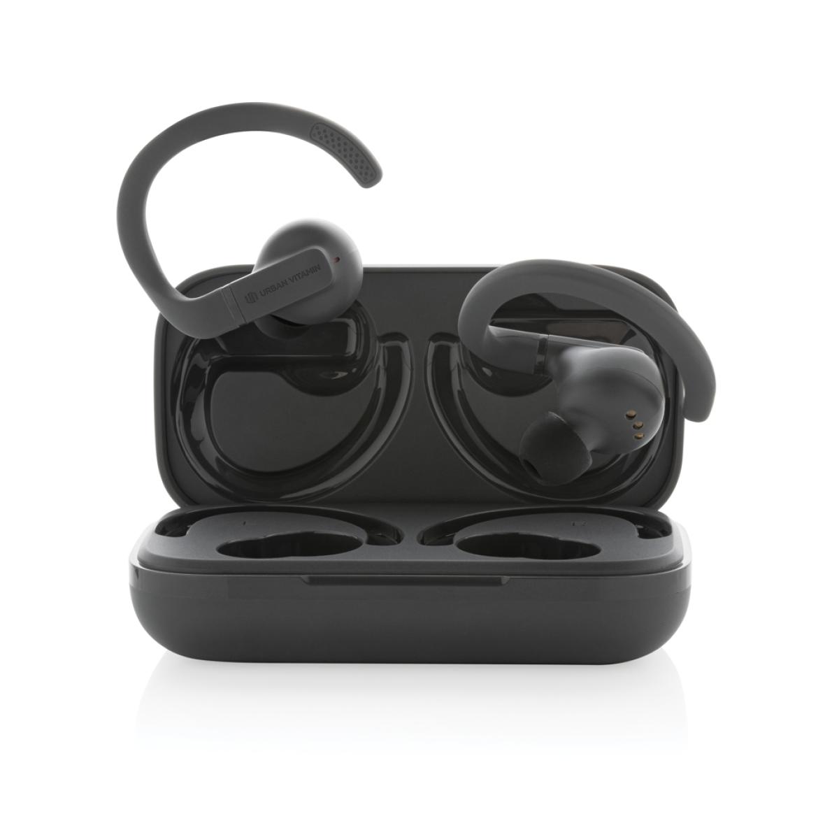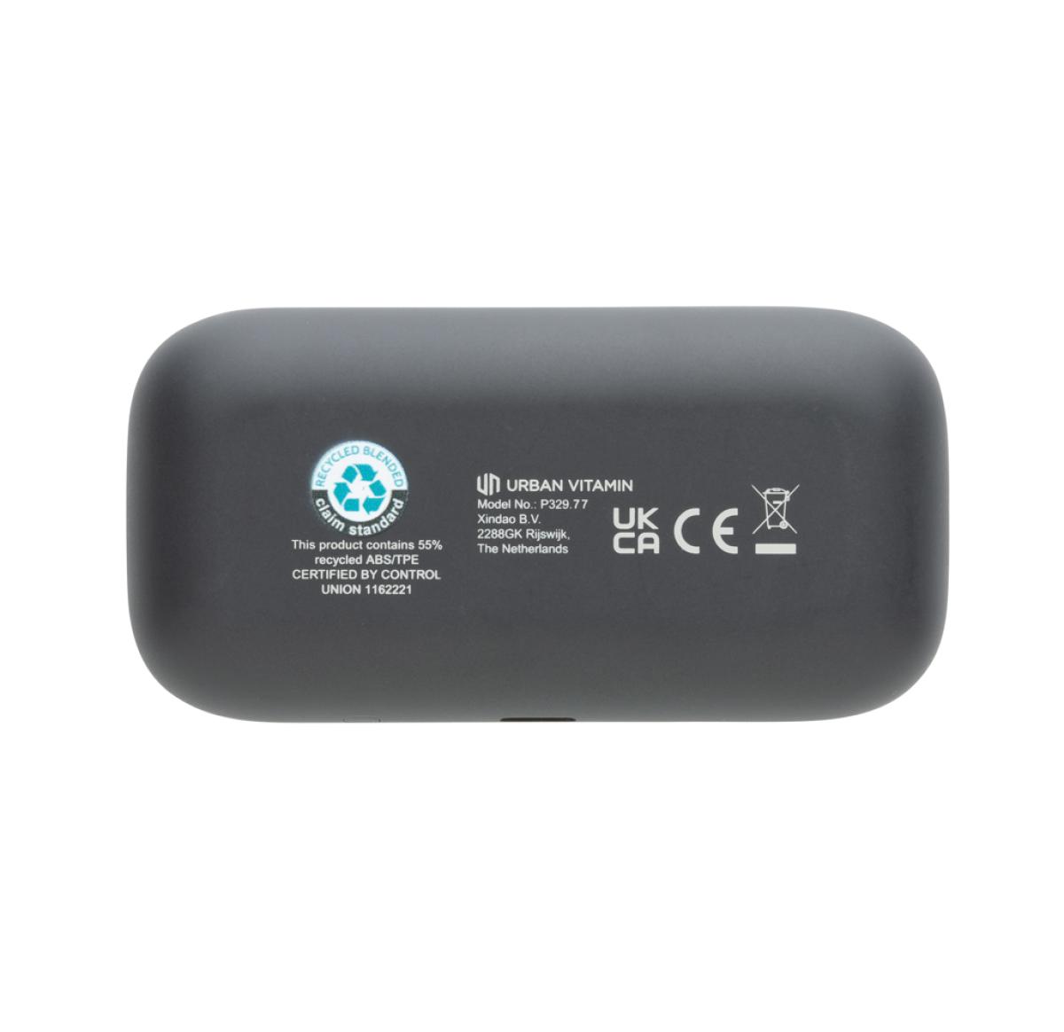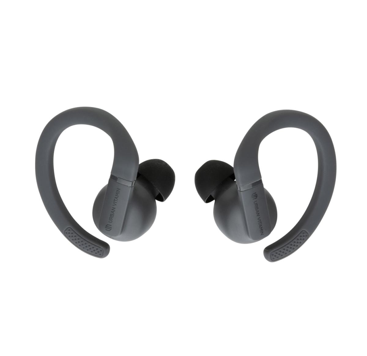 Outperform yourself and take your fitness to the next level with these perfect fit work out earbuds. The customisable, perfect fit ear hooks are adjustable with multiple ear tip options for extended comfort, and are made to stay in place, no matter how intense your workout is. These lightweight earbuds are built for peak performance with a sturdy design for IPX5-rated sweat, dust and water resistance. With up to 8 hours hours of listening time due to advanced BT 5.3 in each earbud and powerful, balanced sound, you??ll always have your music to motivate you. The earbuds and 600 mah charging case are made with made with RCS (Recycled Claim Standard) certified recycled ABS/TPE. Total recycled content: 55 % based on total item weight. RCS certification ensures a completely certified supply chain of the recycled materials. The earbuds can be re-charged 3 times fully in the charging case. Urban Vitamin items are made without PVC and packed in in plastic reduced packaging.