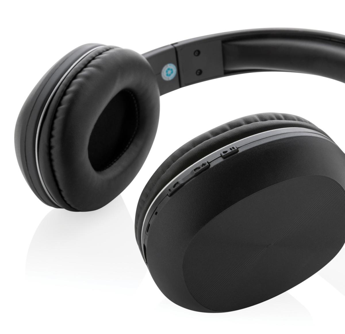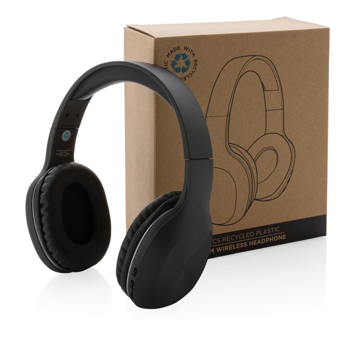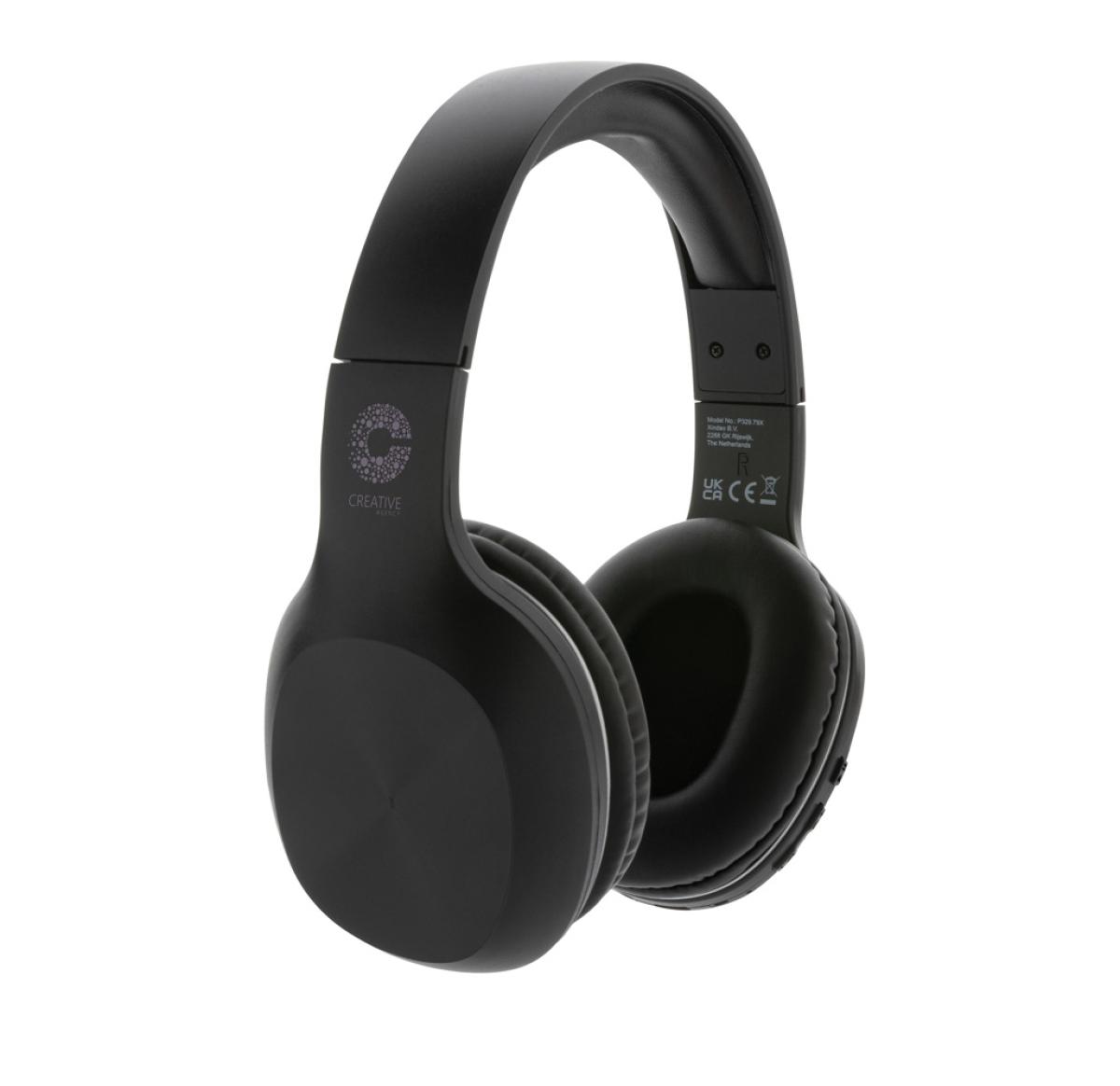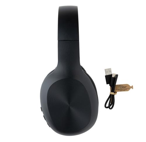 Comfortable wireless headphone that uses BT5.1 for super smooth connection and long lasting playtime. Made with RCS (Recycled Claim Standard) certified recycled ABS.Total recycled content: 73 % based on total item weight. RCS certification ensures a completely certified supply chain of the recycled materials. The over ear design of the earbuds allows a perfect sound experience. Foldable design for easy storage. The built-in 200 mah lithum battery allows a play time up to 5 hours and can be fully re-charged in 1.5 hours. Operating distance up to 10 metres. Including mic to answer phone calls. Including GRS certified recycled TPE charging cable. Packed in FSC?? mix packaging. Item and accessories 100% PVC free.