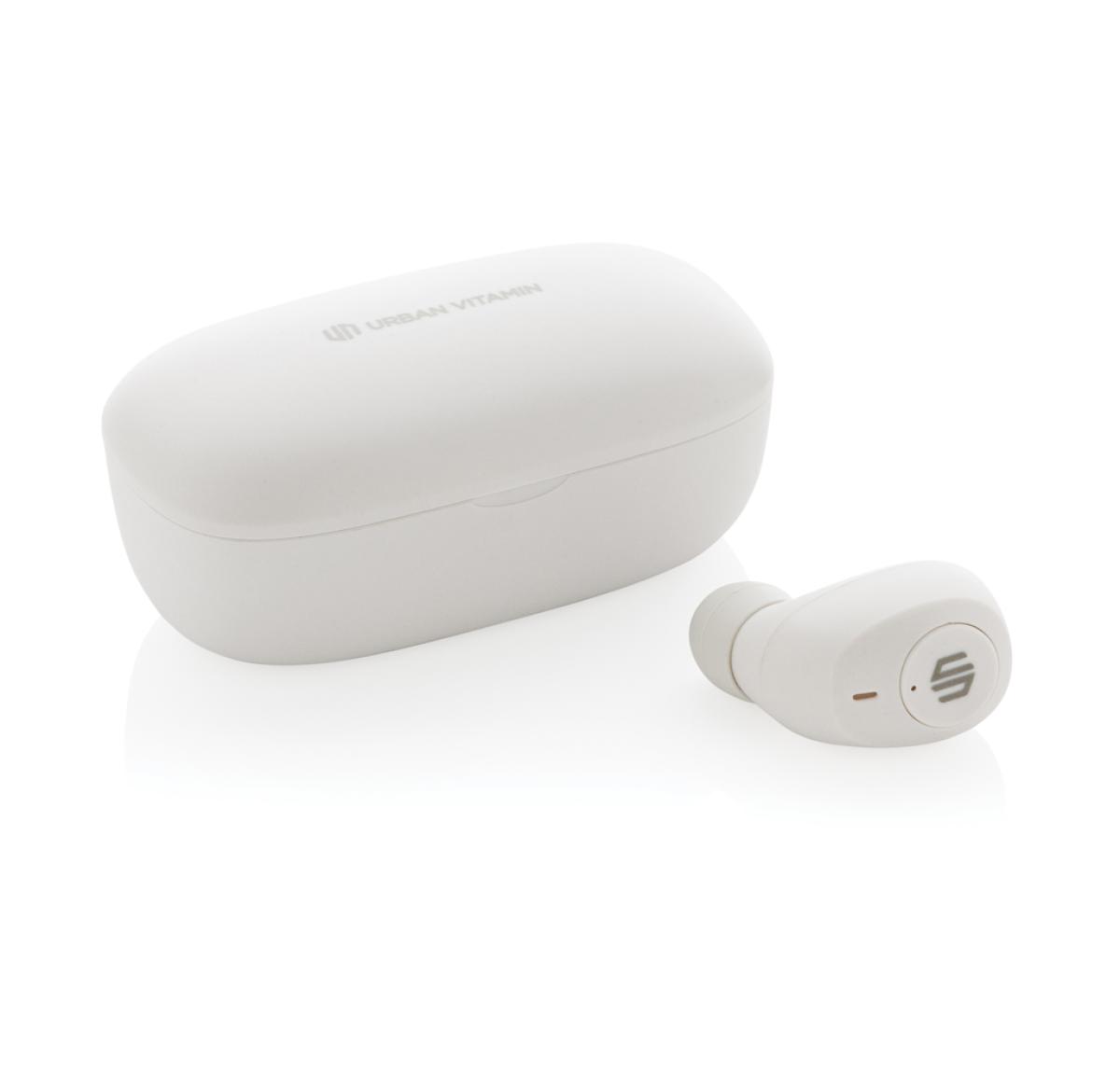 When you open the case and put in the earbuds, the sound hits you. The earbuds and portable charging case are designed to be able to carry no matter where you go and fit easily into your pocket. The comfortable earbuds have up to 6 hours of listening time and the charging case allows up to 20 hours of playback. Enough to keep you going all day! When receiving a call simply answer it in stereo sound thanks to the ENC integrated microphone for perfect calling quality. The IPX 4 rating makes the earbuds weather proof so no worries to take them outside. Earbuds and charging case made with RCS (Recycled Claim Standard) certified recycled ABS. Total recycled content: 55 % based on total item weight. RCS certification ensures a completely certified supply chain of the recycled materials. Urban Vitamin items are made without PVC and packed in plastic reduced packaging.