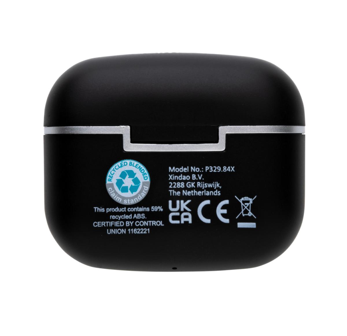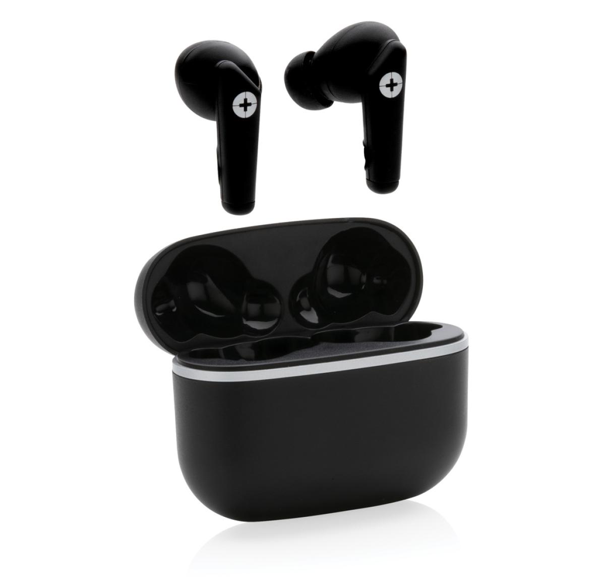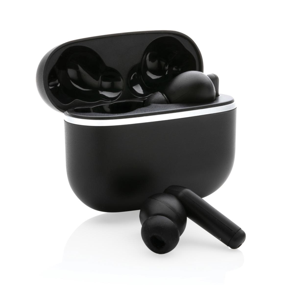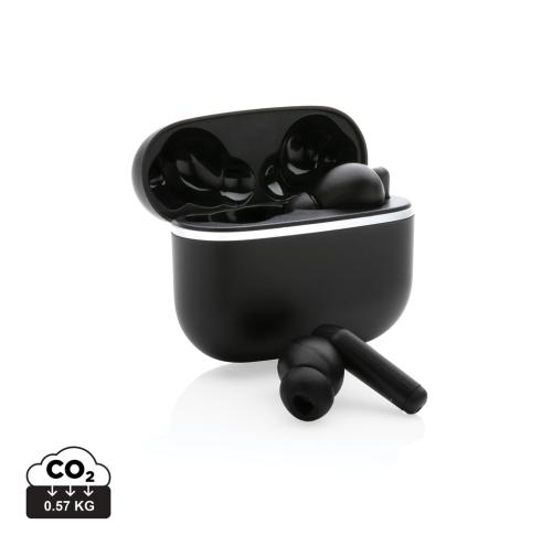 New generation true wireless earbuds. The earbuds and charging case are made with RCS (Recycled Claim Standard) certified recycled ABS. Total recycled content: 59% based on total item weight. RCS certification ensures a completely certified supply chain of the recycled materials. The earbuds come in a compact 400 mAh charging case that allows you to charge and take your earbuds wherever you go. The earbuds use BT 5.3 for automatic pairing without any hassle and with a stable connection. The earbuds have a 40 mAh battery that allows a play time of up to 4 hours and can be re-charged in 1.5 hours in the charging case. The wireless distance range is up to 10 metres. Including type C charging cable made from GRS certified recycled TPE. Packed in FSC?? mix gift box. Item and accessories 100% PVC free