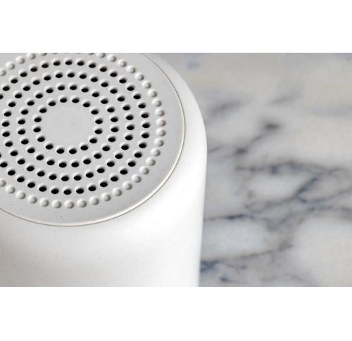 5W wireless speaker made with RCS (Recycled Claim Standard) certified recycled ABS and TPE. Total recycled content: 38% based on total item weight. RCS certification ensures a completely certified supply chain of the recycled materials. The speaker has an integrated light at the bottom. The speaker is equipped with a 300 mAh battery to ensure up to 5 hours of playing time and BT5.0 for smooth connection and clear sound. Connection range up to 10 metres. With mic to answer calls. Packed in FSC?? mix box. Including RCS certified recycled TPE charging cable. Item and accessories 100% PVC free.