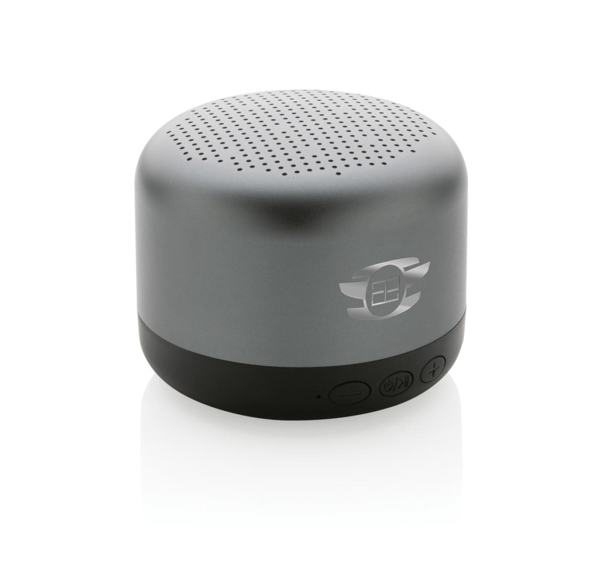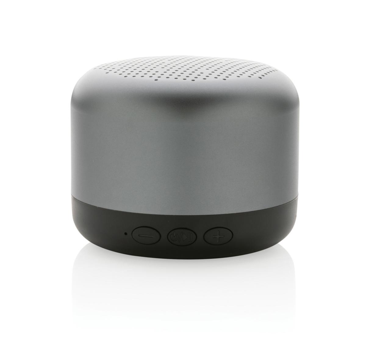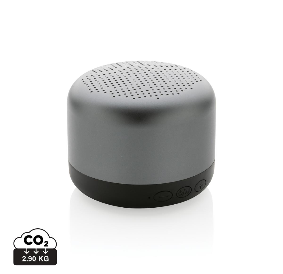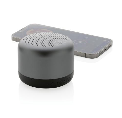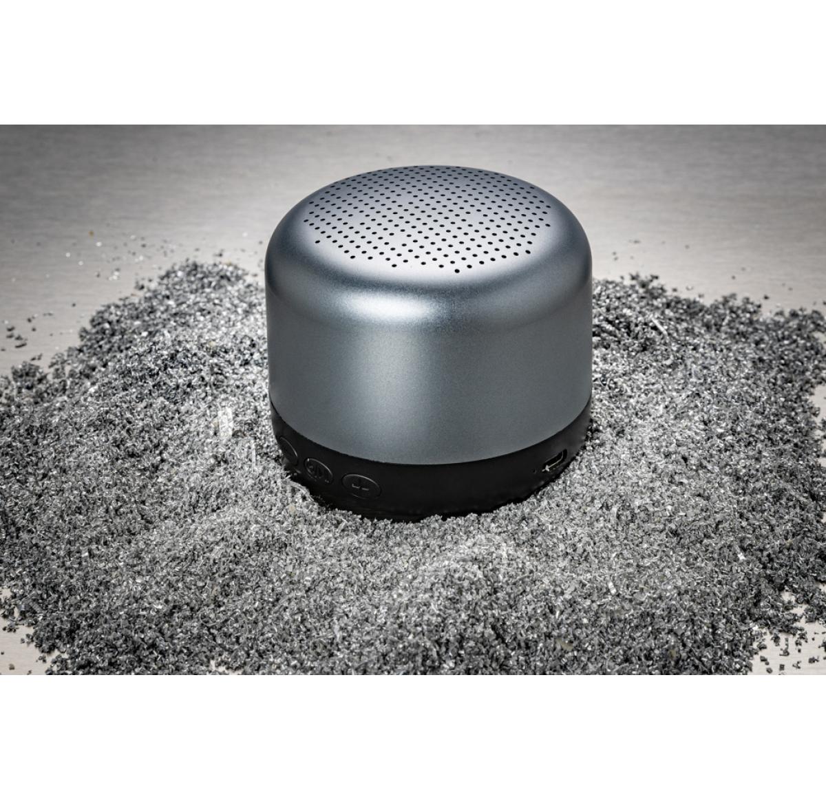 5W wireless speaker made with RCS (Recycled Claim Standard) certified recycled aluminum and ABS. Total recycled content: 35% based on total item weight. RCS certification ensures a completely certified supply chain of the recycled materials. Aluminum does not lose its characteristics in the recycling process and can be recycled endlessly. Including recycled type C charging cable made from RCS certified recycled aluminum, TPE and PET. Packed in FSC?? mix packaging. The 600 mah battery allows a playtime up to 4 hours and can be fully re-charged in 2 hours. With BT 5.0 for smooth connection up to 10 metres.