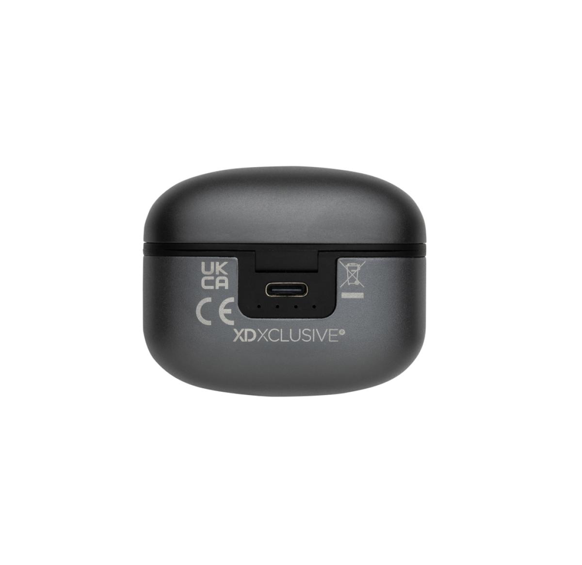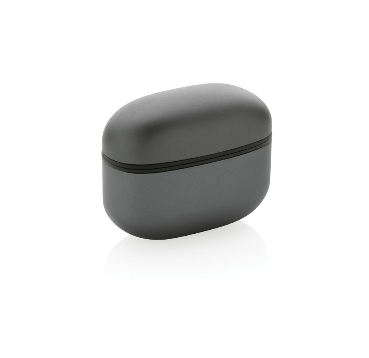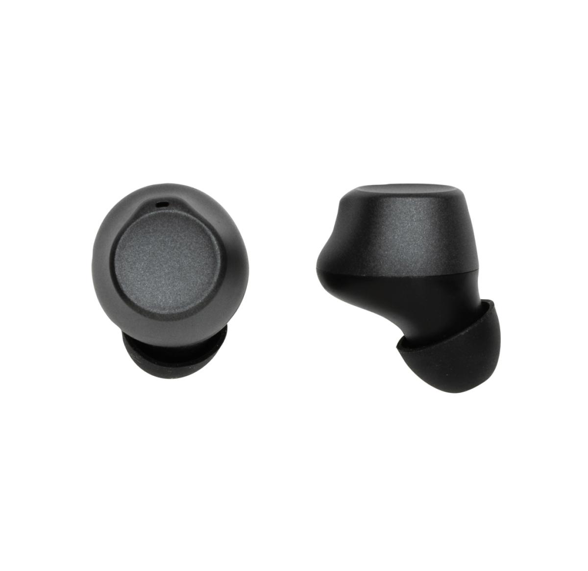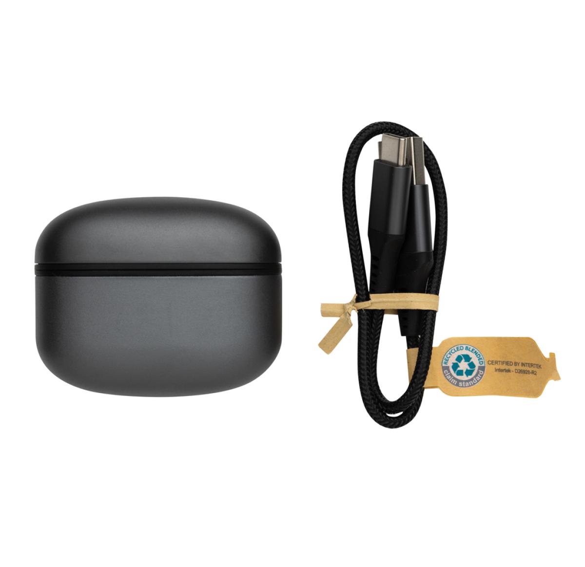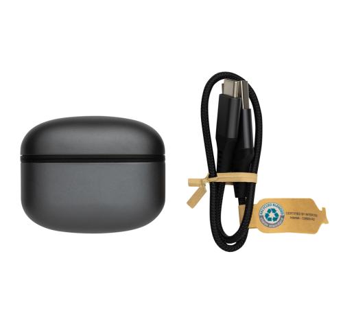 Wireless earbuds with clear sound and strong bass. Made with RCS (Recycled Claim Standard) certified recycled aluminum and ABS. Total recycled content: 64% based on total item weight. RCS certification ensures a completely certified supply chain of the recycled materials. Aluminum does not lose its characteristics in the recycling process and can be recycled endlessly. Including recycled type C charging cable made from RCS certified recycled aluminum, TPE and PET. The earbuds have a 40mah battery that allows a playtime up to 5 hours and can be fully re-charged in 1.5 hours via the 300 mah charging case. With BT 5.3 for smooth connection up to 10 metres. Packed in FSC?? mix packaging. Item and accessories 100% PVC free.