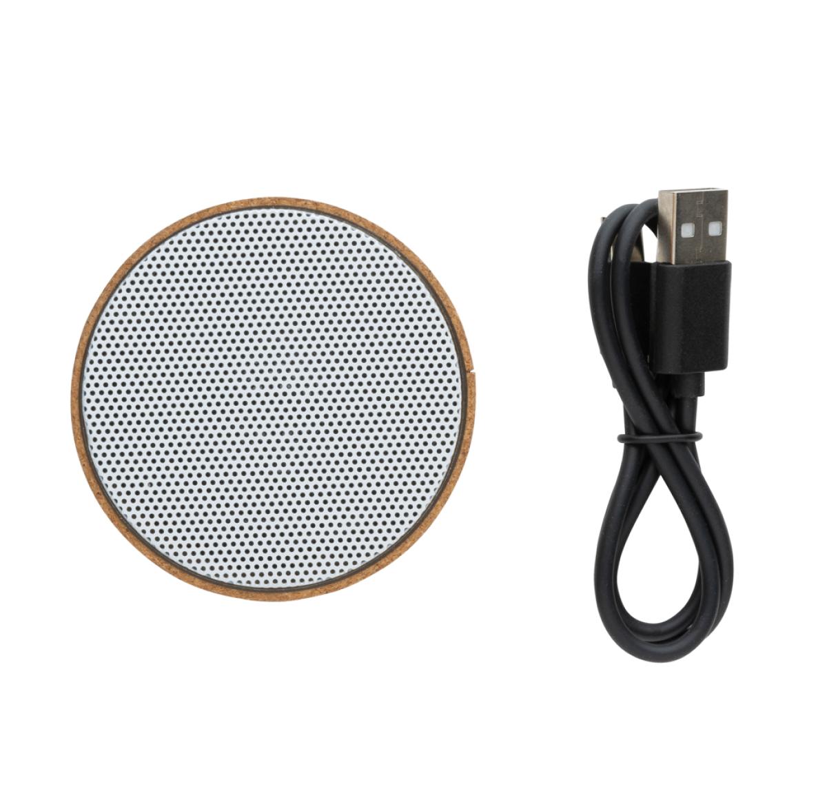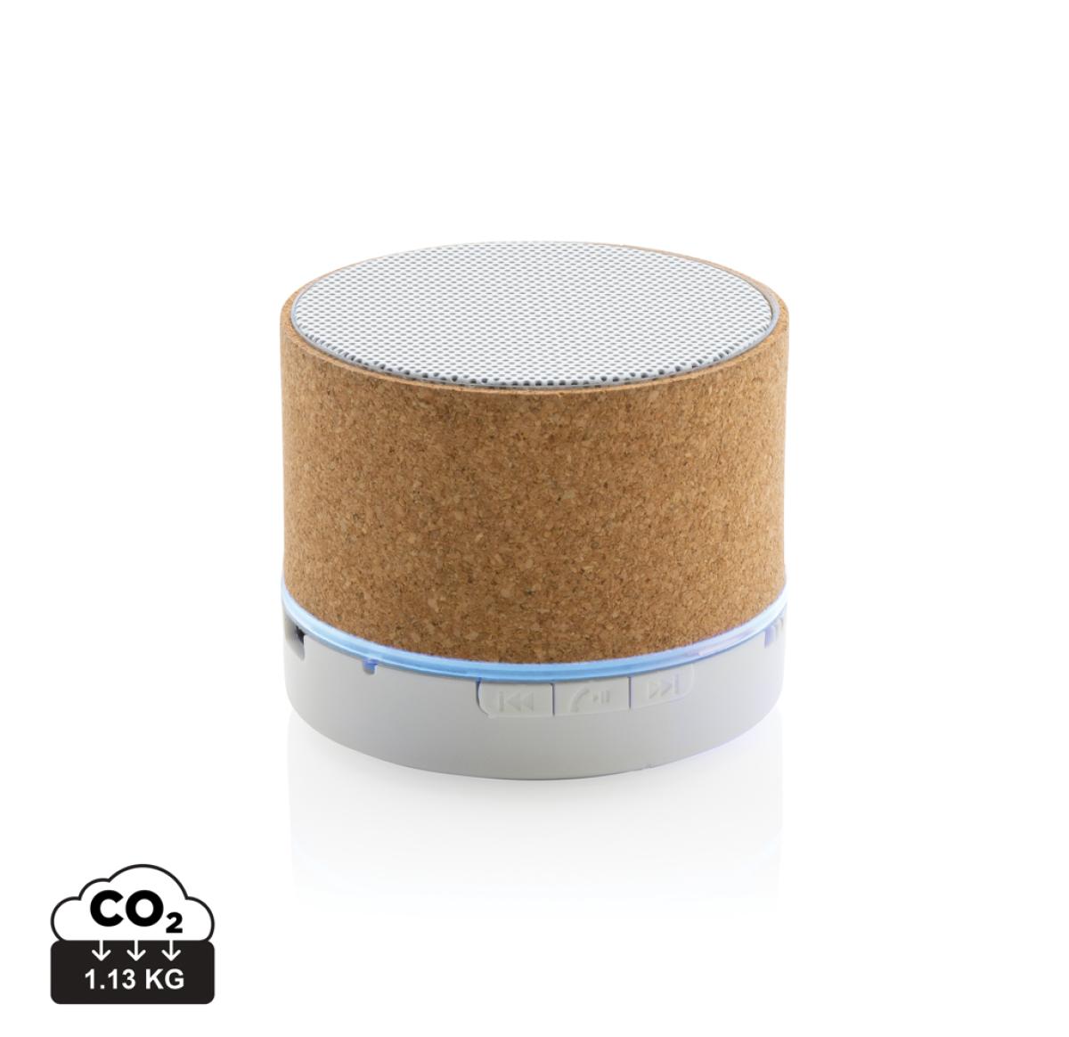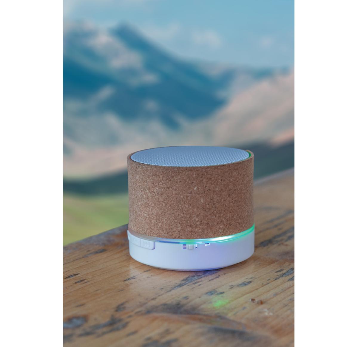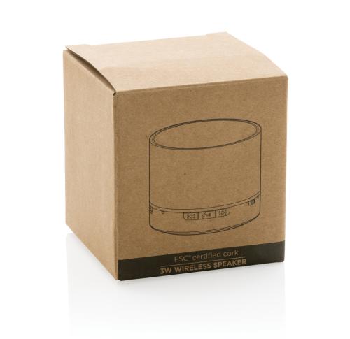 3W wireless speaker made with FSC?? 100% cork casing. The speaker is equipped with a 400 mAh battery to ensure up to 3 hours of playing time and BT5.1 for smooth connection and clear sound. The speaker has an integrated light when switched on. Connection range up to 10 metres. With mic and pick up function to answer calls. Packed in FSC mix FSC?? box. Including RCS certified recycled TPE charging cable. Item and accessories 100% PVC free.