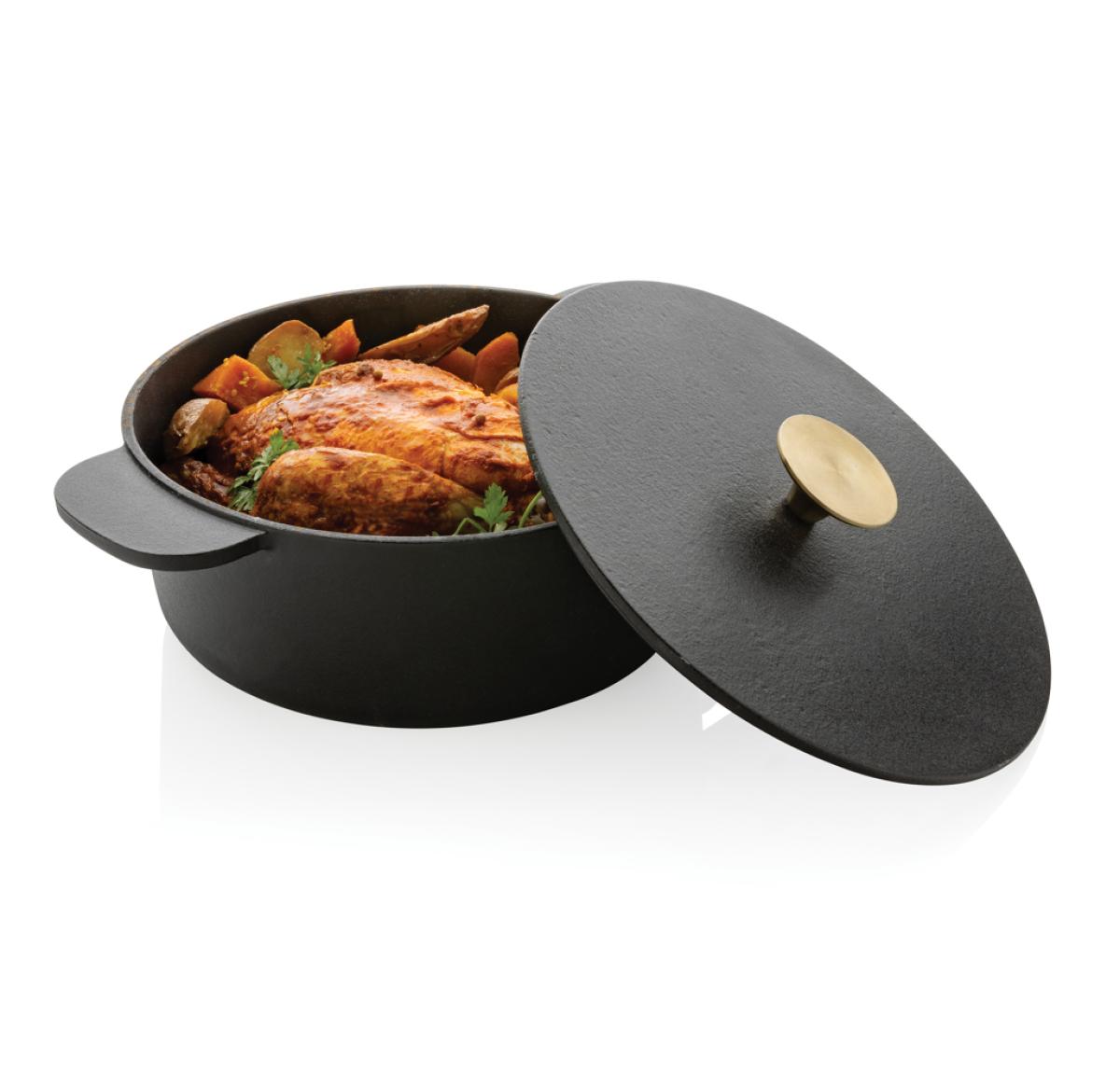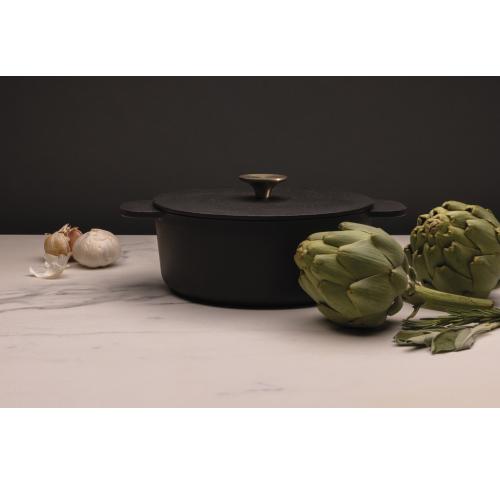 The Ukiyo enameled cast-iron pan is a true culinary powerhouse. Perfectly designed for stews, roasts and soups! This is the only pan you need for great meals. The cast iron construction retains heat, allowing food to bake and brown evenly. Your culinary creations will also stay warm longer at the table. Suitable for the oven, hob, induction or under the grill. Capacity 2.8 litre. Diameter 23cm. Packed in FSC?? certified kraft box.
