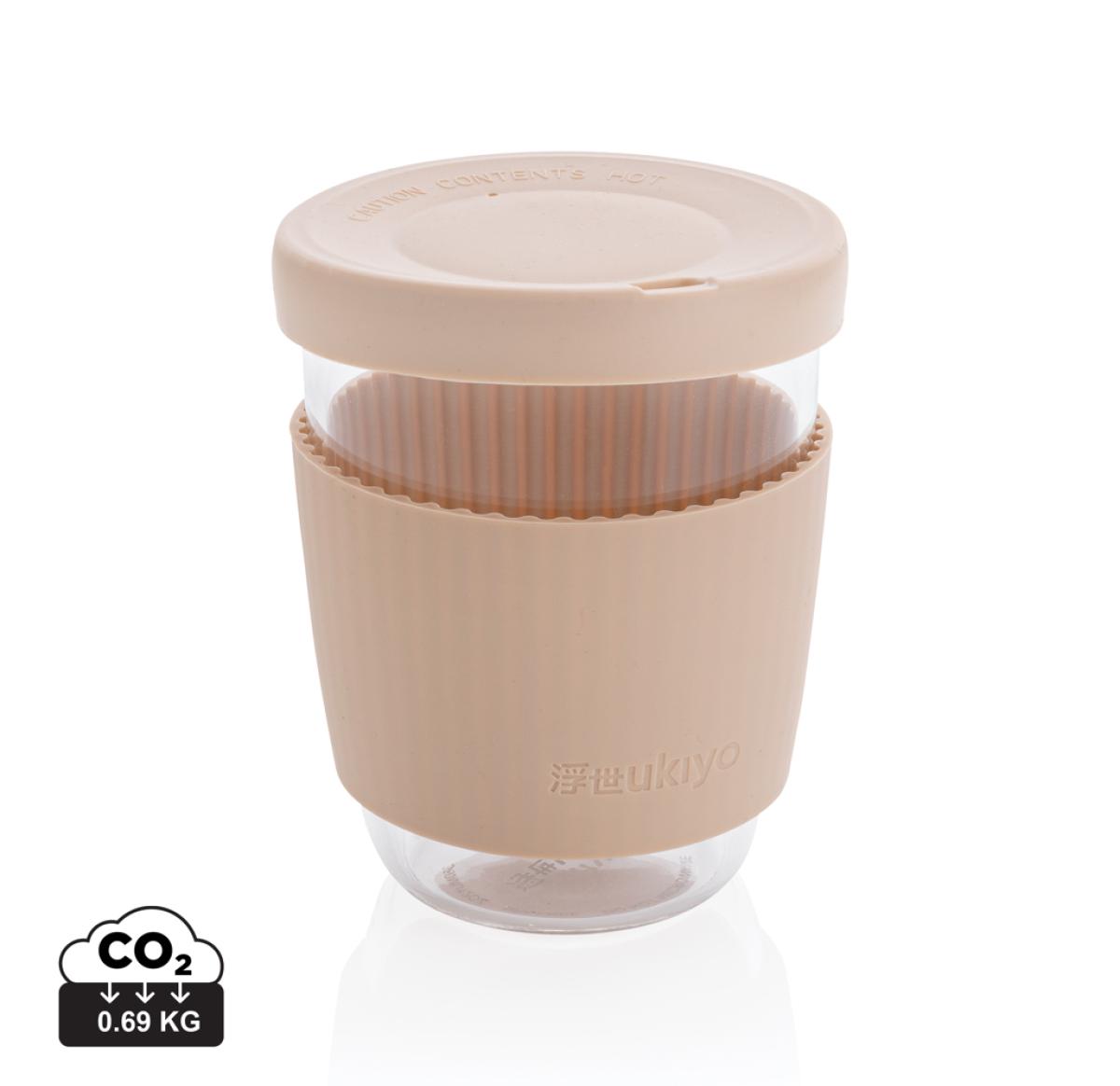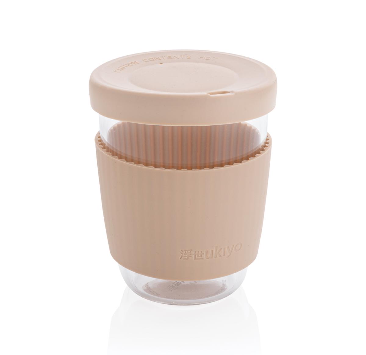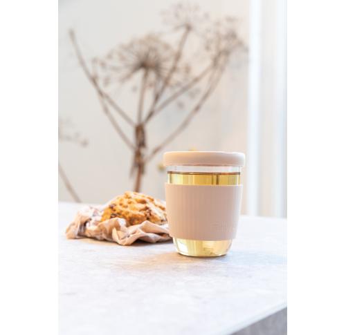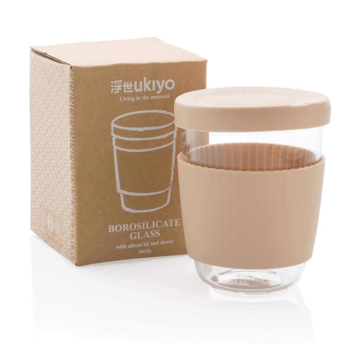 Branded GlassTakeaway Coffee Cups With Silicone Lid And Sleeve 360ml Ukiyo Borosilicate - Brown