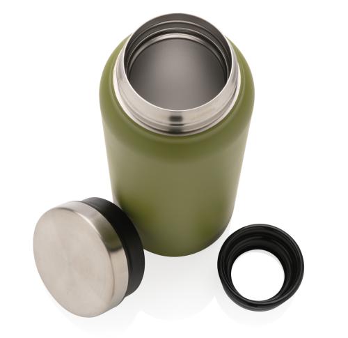 This RCS Recycled stainless steel vacuum bottle comes with a secure screw-on lid that features a wide opening for easy cleaning and filling. The additional PP insert ensures that the bottle is leakproof. This bottle is made from recycled stainless steel and features a double-wall construction to keep your favourite beverages warm for up to 5 hours or cold for up to 15 hours. Made with RCS (Recycled Claim Standard) certified recycled materials. RCS certification ensures a completely certified supply chain of the recycled materials. Total recycled content: 77% based on total item weight. BPA free. Capacity 600ml. Including FSC??-certified kraft gift box.