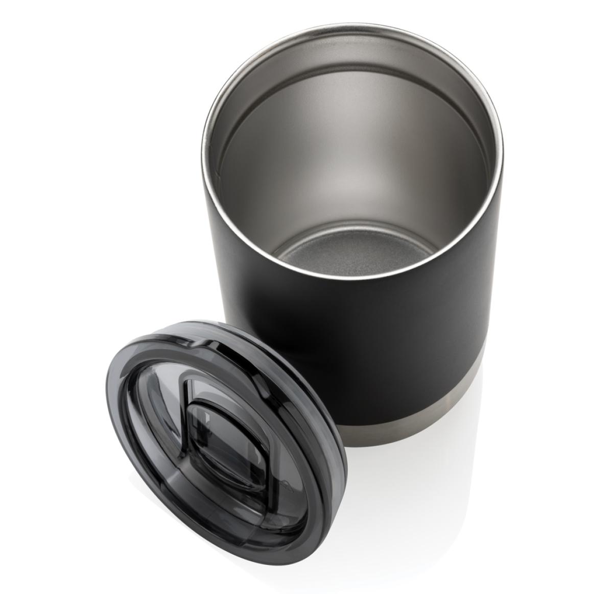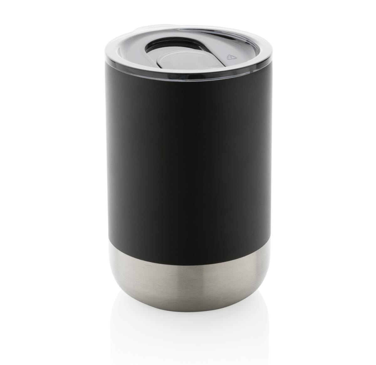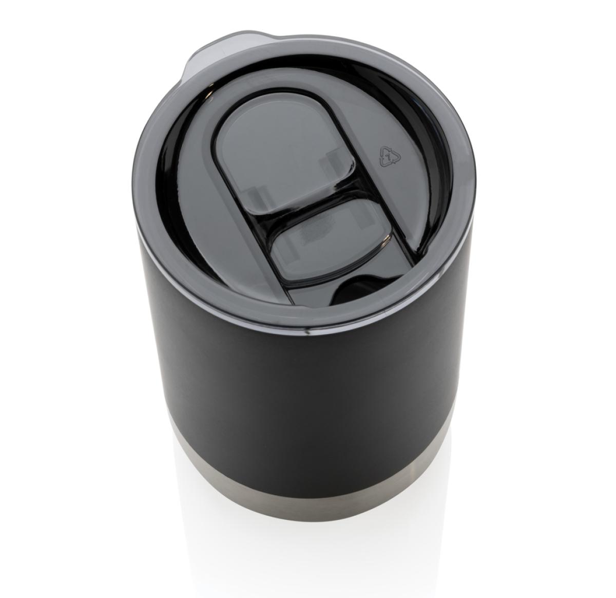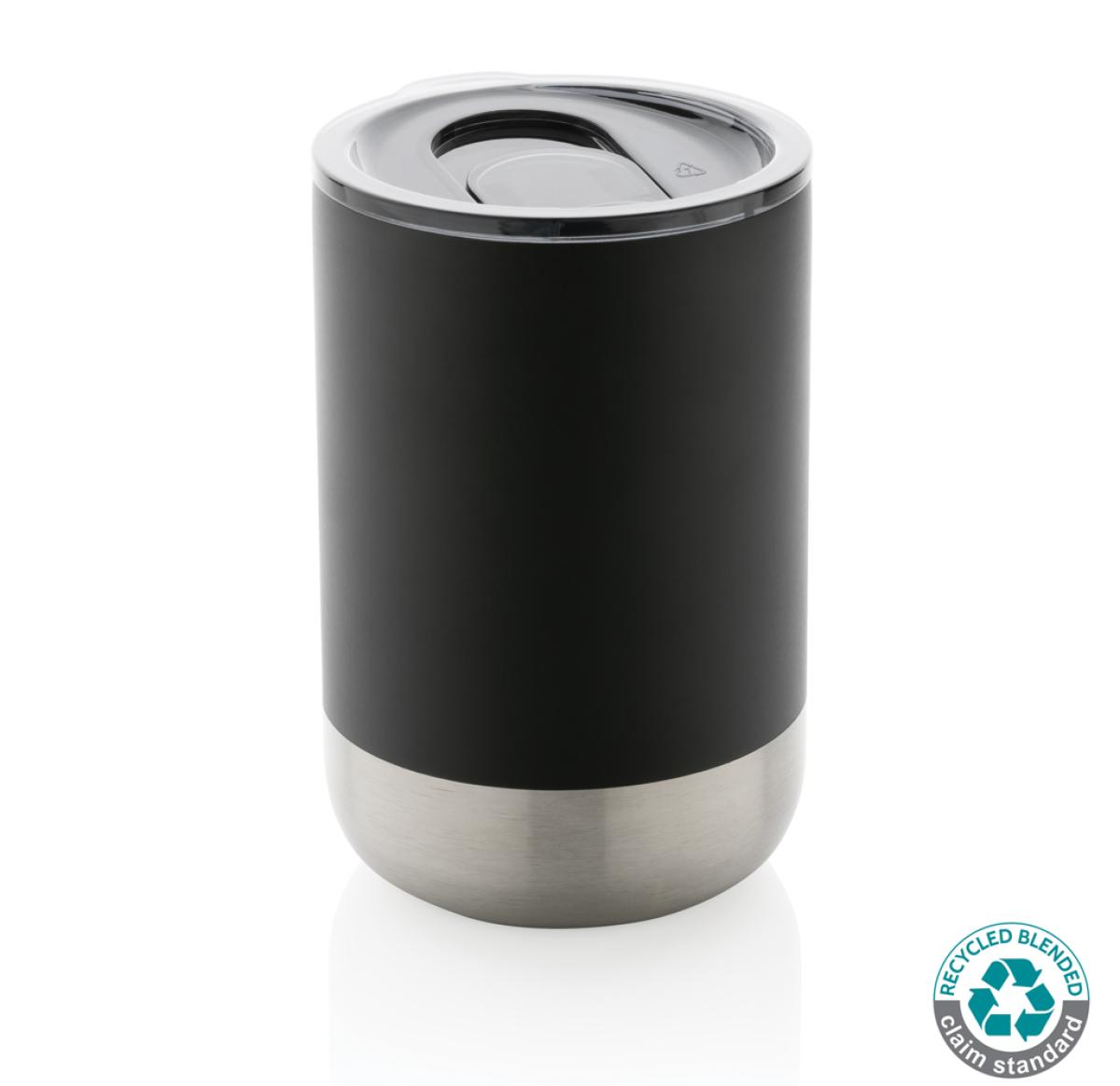 This beautiful tumbler features a recycled stainless steel construction with vacuum insulation to keep drinks warm for up to 3 hours or cold for up to 6 hours. Its trendy execution with stainless steel bottom accent makes it a true eye catcher. The lid with slide open function ensures a spill proof drinking experience. Made with RCS (Recycled Claim Standard) certified recycled materials. RCS certification ensures a completely certified supply chain of the recycled materials. Total recycled content: 76% based on total item weight. BPA free. Capacity 360ml. Including FSC??-certified kraft packaging.