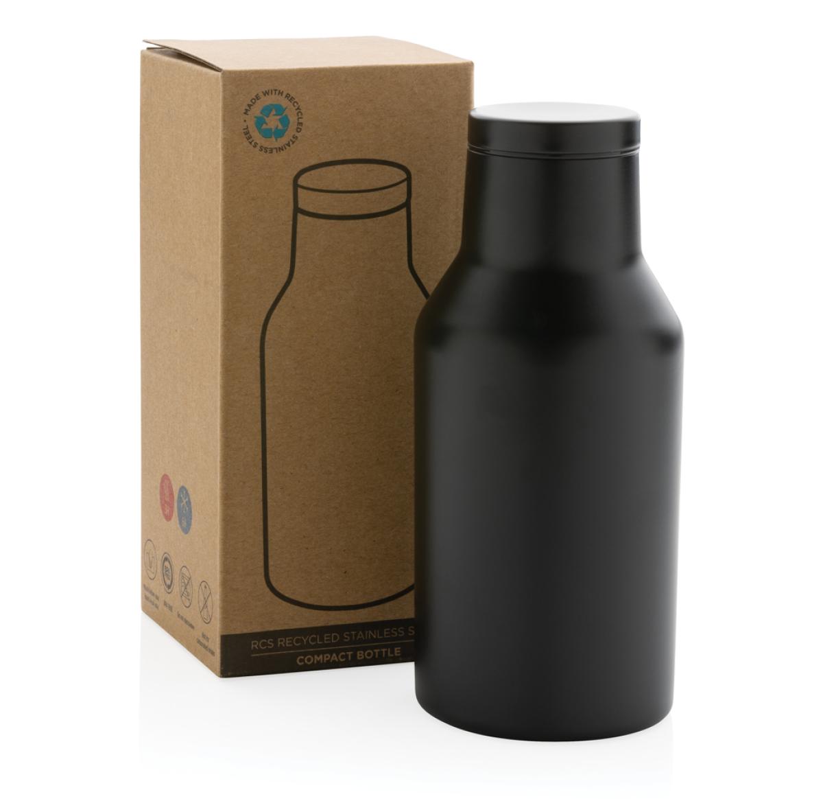 Branded Recycled Stainless Steel Compact Bottles RCS - Black 300ml