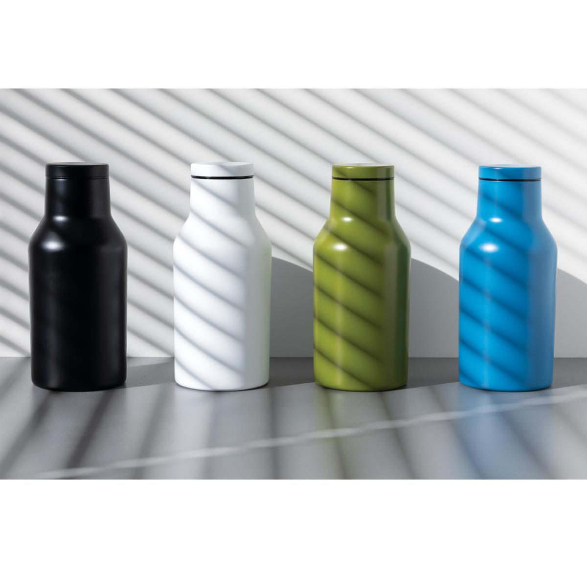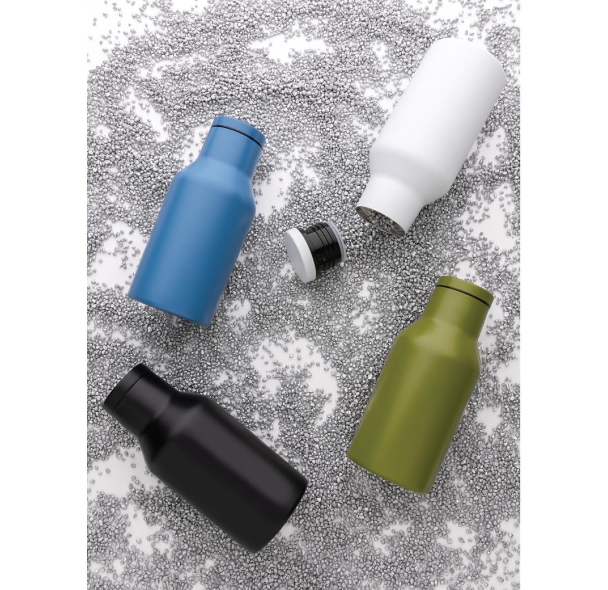 This RCS Recycled stainless steel compact bottle comes with a secure, screw-on lid that features a wide opening for easy cleaning and filling. This compact bottle is made from recycled stainless steel and features double-wall construction to keep your favourite beverages warm for up to 3 hours or cold for up to 6 hours. Made with RCS (Recycled Claim Standard) certified recycled materials. RCS certification ensures a completely certified supply chain of the recycled materials. Total recycled content: 89% based on total item weight. BPA free. Capacity 300ml. Including FSC??-certified kraft packaging.