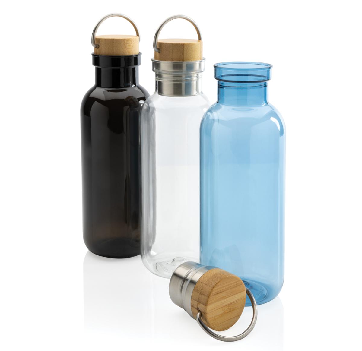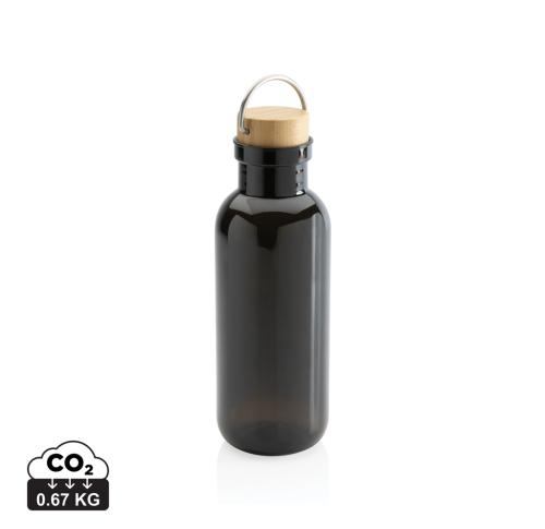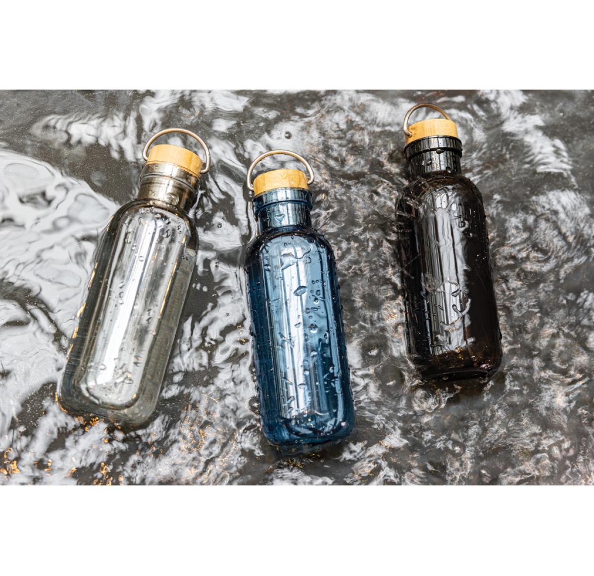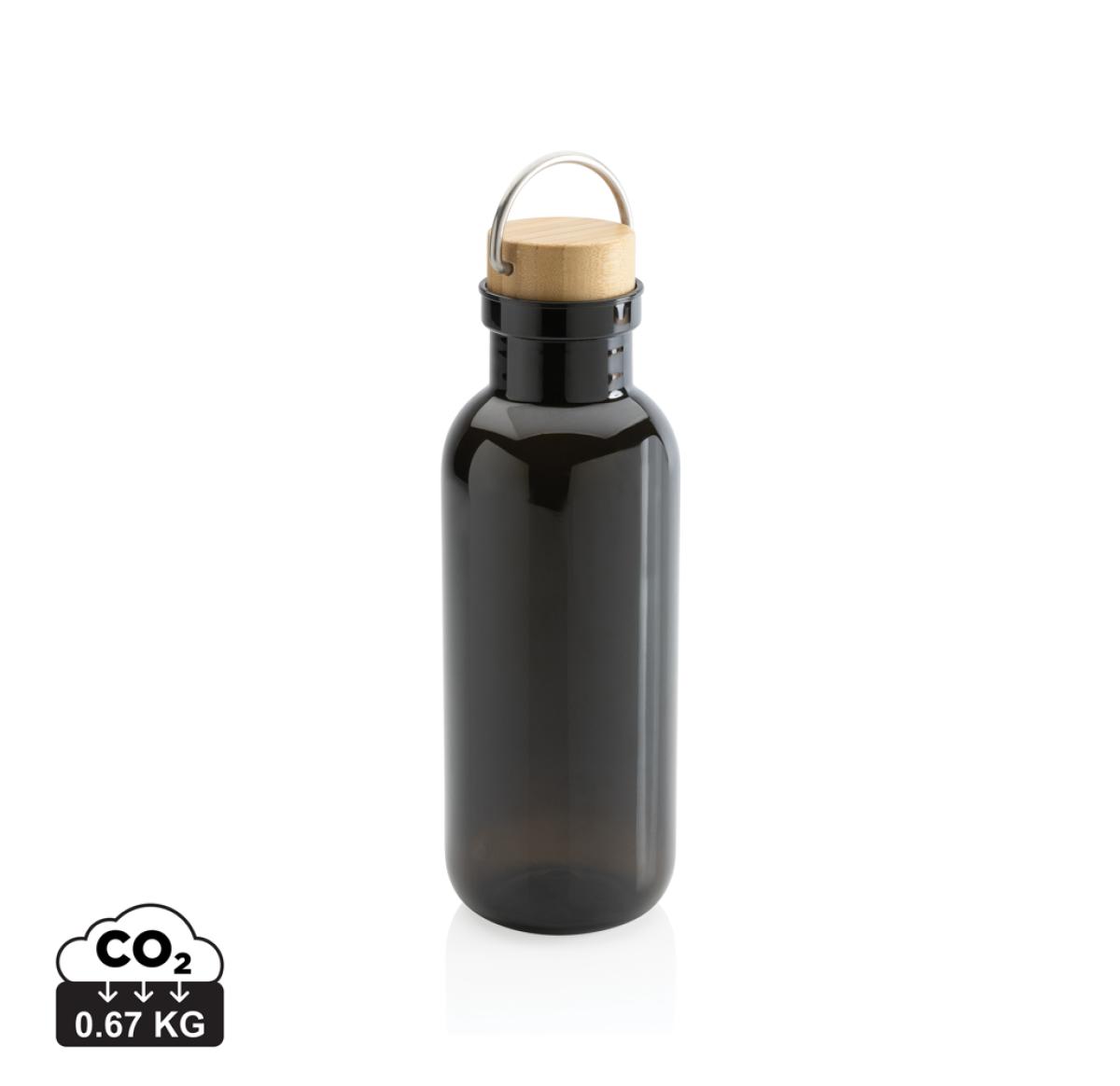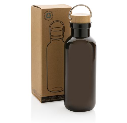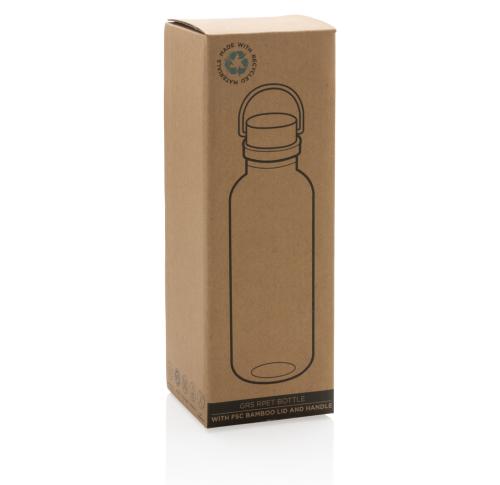 This RPET water bottle is single-wall constructed and features a stylish FSC-certified bamboo lid. It also features a handle for easy carrying. The body of the bottle is made from 100% GRS certified RPET. GRS certification ensures a completely certified supply chain of the recycled materials. Hand wash only. This product is for cold drinks only. Total recycled content: 56% based on total item weight. BPA free. Capacity 680ml. Including FSC??-certified kraft packaging.