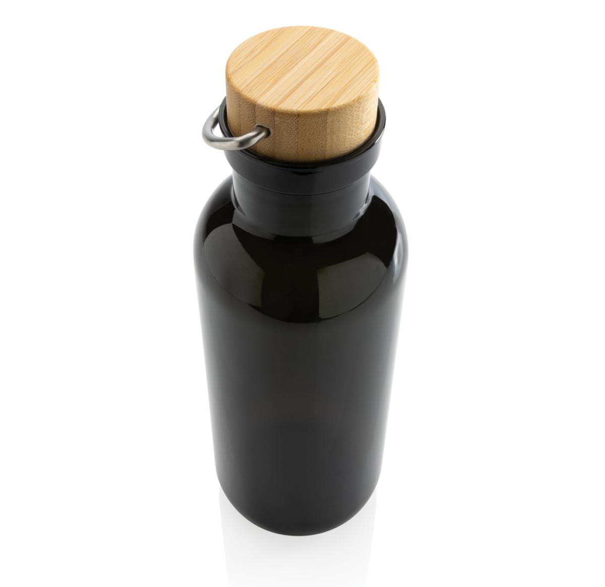 Printed Recycled Eco GRS Bottles With Bamboo Lid And Handle Black