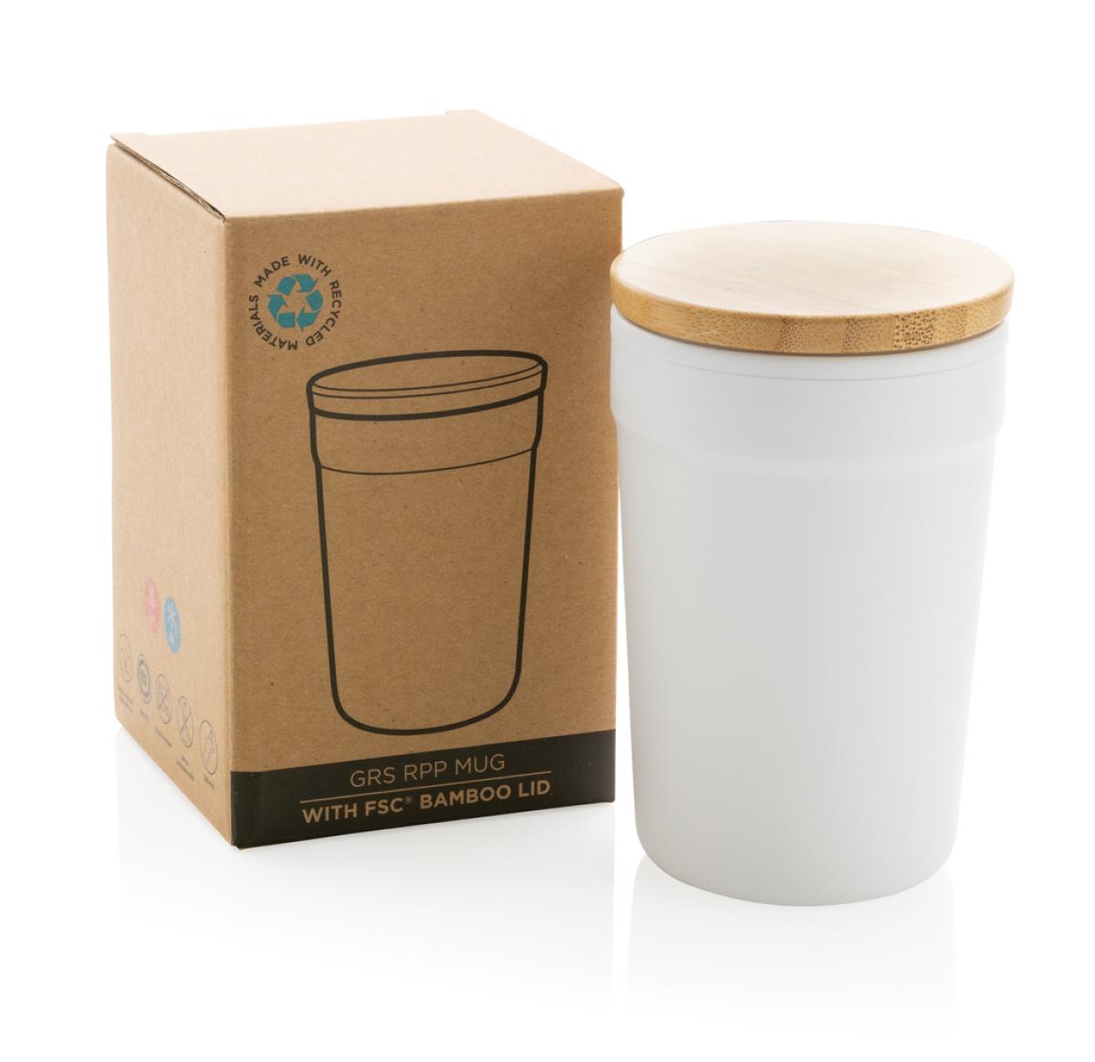 Recycled Coffee Mug With Bamboo Lid White GRS RPP