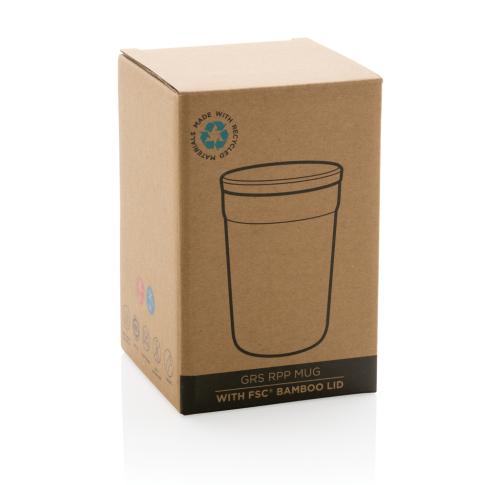 This beautiful tumbler with bamboo lid is made with GRS certified recycled PP. GRS certification ensures a completely certified supply chain of the recycled materials. The tumbler features a bamboo lid for on the go usage. Total recycled content: 52% based on total item weight. The body is microwave and dishwasher safe. BPA free. Capacity 300ml. An FSC??-certified kraft box is included.