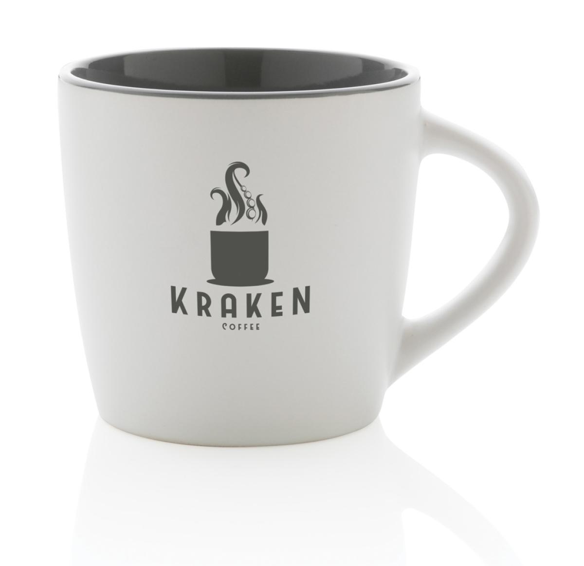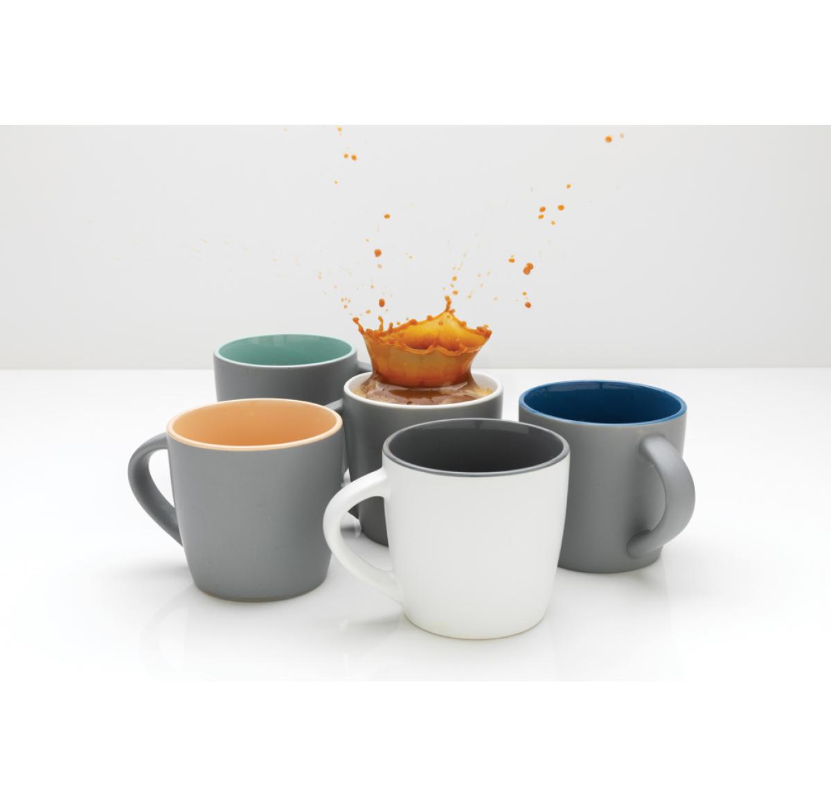 This ceramic mug features a fresh design with a matt exterior finish and interior colour accent. The mug is dishwasher safe and tested in accordance with EN12875-1 (at least 125 washing cycles for all decoration methods). Packed in a kraft gift box. Capacity 300ml.