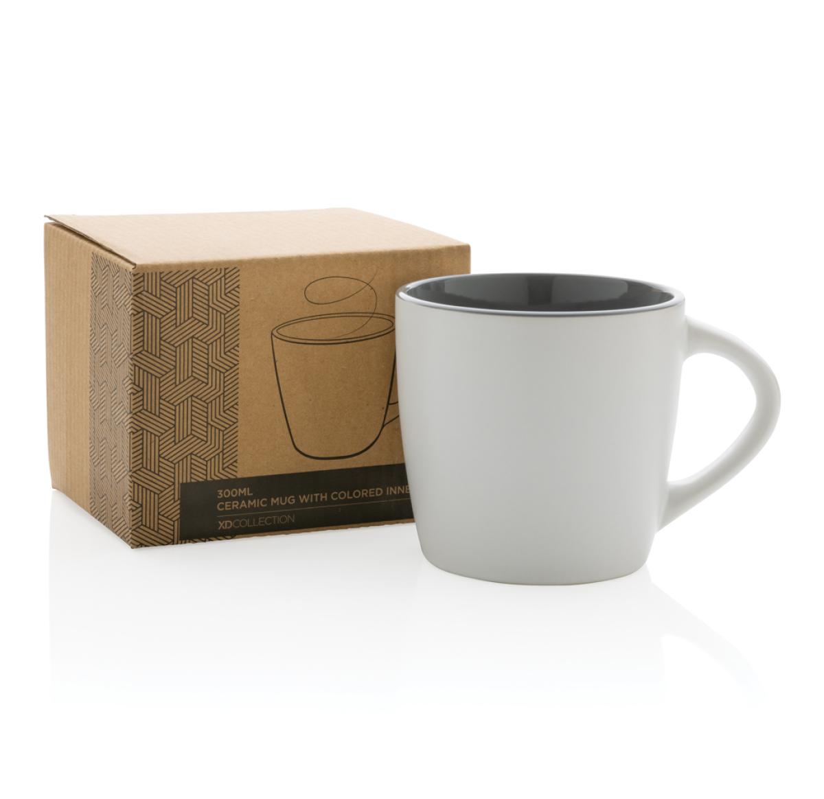 Ceramic Mug With Coloured Inner White / Grey 300ml Dishwasher Safe Printed Logo