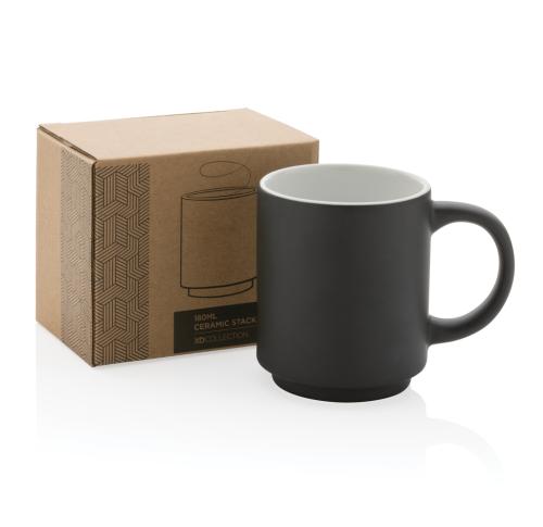 These stackable ceramic mugs are easy to store neatly and will save you a lot of space. Handy in your cupboard! The mug is dishwasher safe and tested in accordance with EN12875-1 (at least 125 washing cycles for all decoration methods). Packed in a kraft gift box. Capacity 180ml.