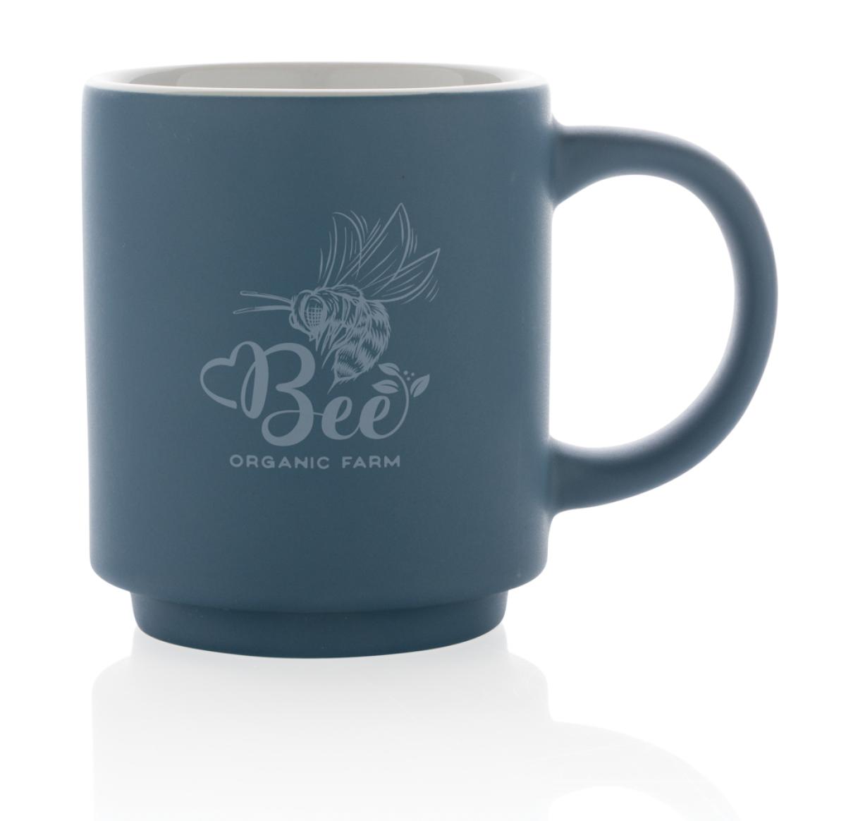 Custom Printed Ceramic Stackable Mugs Blue 180ml Dishwasher Safe