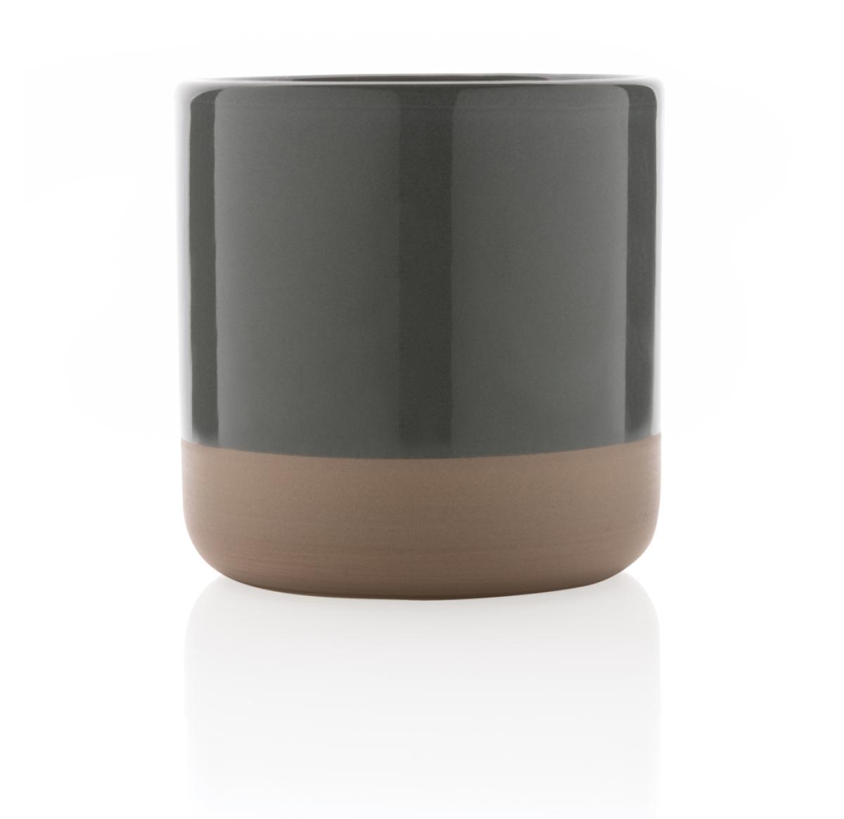 Enjoy your favourite beverages anytime anywhere with this ceramic mug. The mug has a glazed body and a natural baked base. Due to natural variations in the clay used for construction, each mug is unique. Capacity 360 ml. Comes in a kraft gift box.