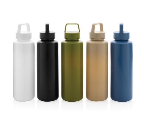 This beautiful bottle with handle is made with RCS certified recycled PP. RCS certification ensures a completely certified supply chain of the recycled materials. The tumbler features a leakproof twist lid for on the go usage. Total recycled content: 97% based on total item weight. BPA free. Capacity 500ml. An FSC??-certified kraft tag is included.
