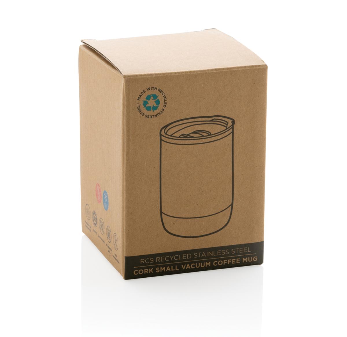 Stay hydrated with this vacuum insulated cork coffee mug with unique cork detail. Keep your drinks warm for up to 5h and cold for up to 15h. Fits most coffee machines. RCS (Recycled Claim Standard) is a standard to verify the recycled content of a product throughout the whole supply chain. Total recycled content: 69% based on total item weight. BPA free. Capacity 180ml. Including FSC??-certified kraft packaging.