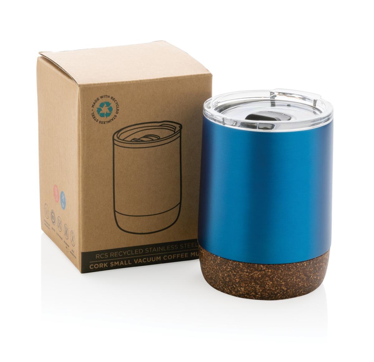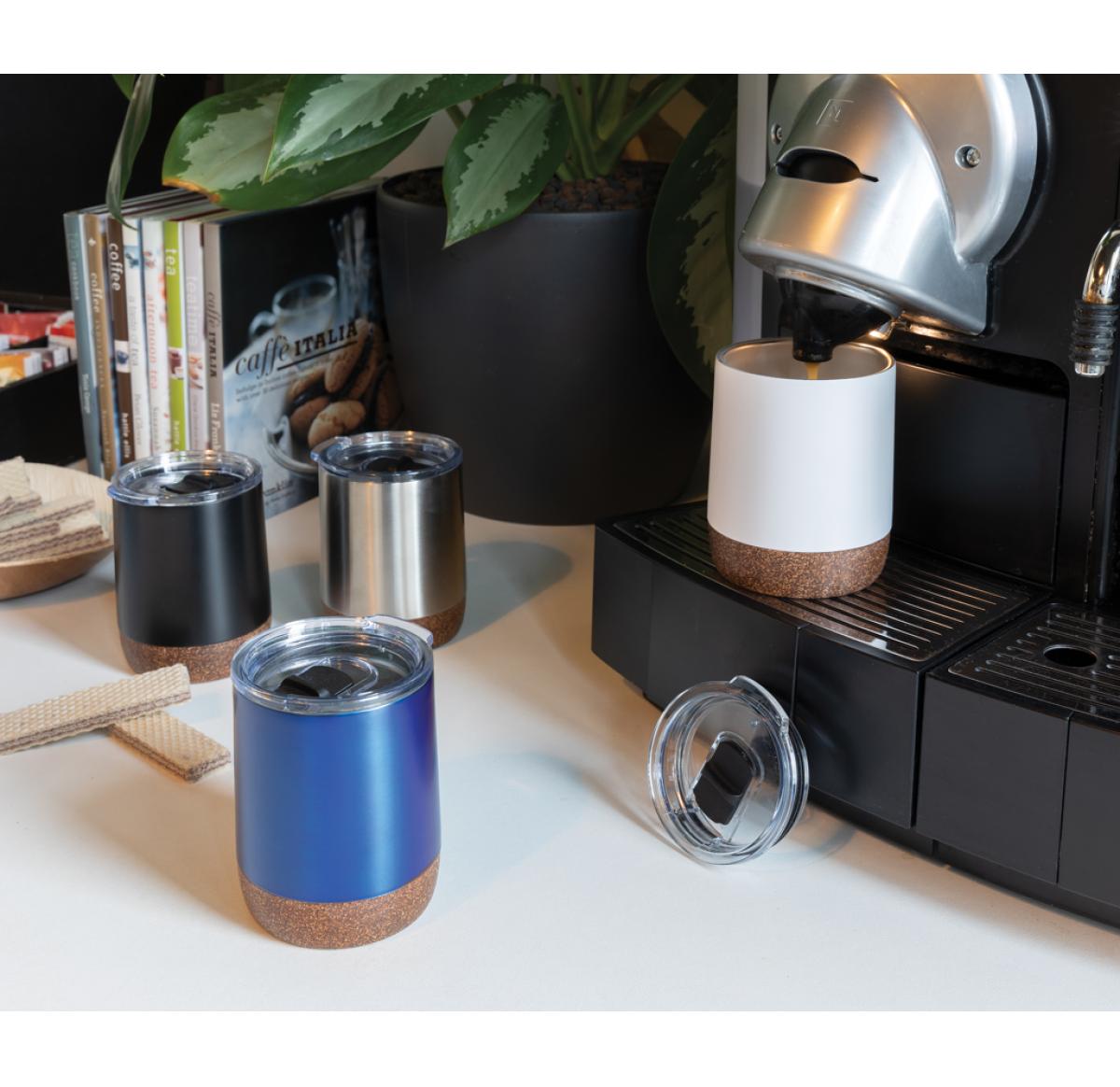 Stay hydrated with this vacuum insulated cork coffee mug with unique cork detail. Keep your drinks warm for up to 5h and cold for up to 15h. Fits most coffee machines. RCS (Recycled Claim Standard) is a standard to verify the recycled content of a product throughout the whole supply chain. Total recycled content: 69% based on total item weight. BPA free. Capacity 180ml. Including FSC??-certified kraft packaging.