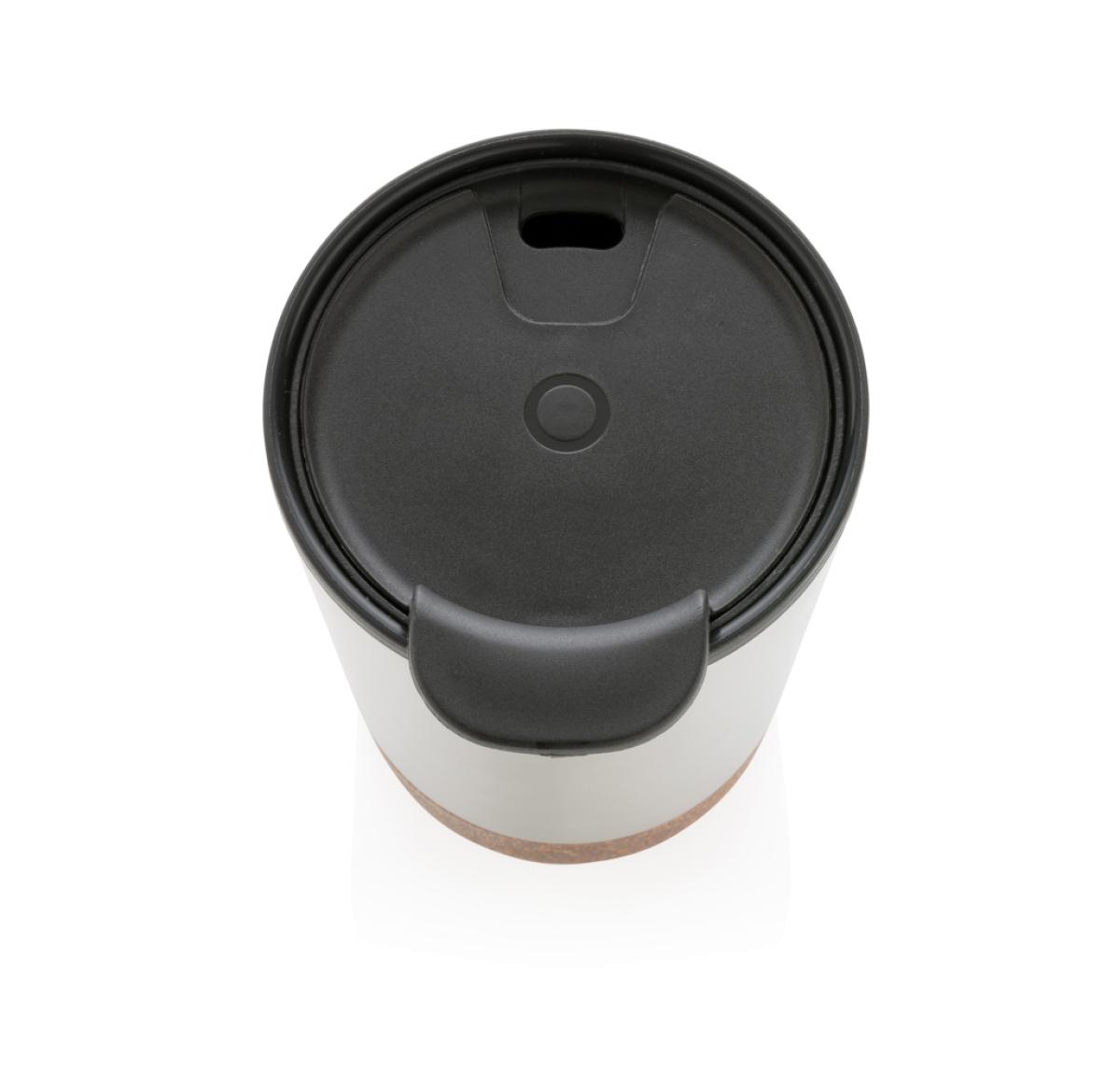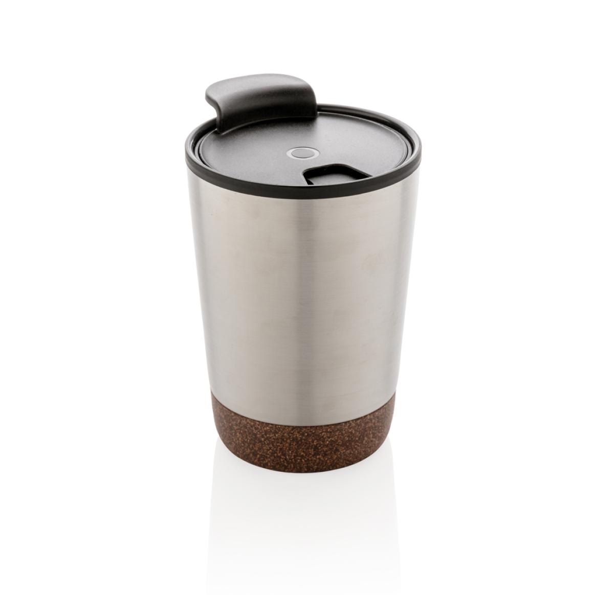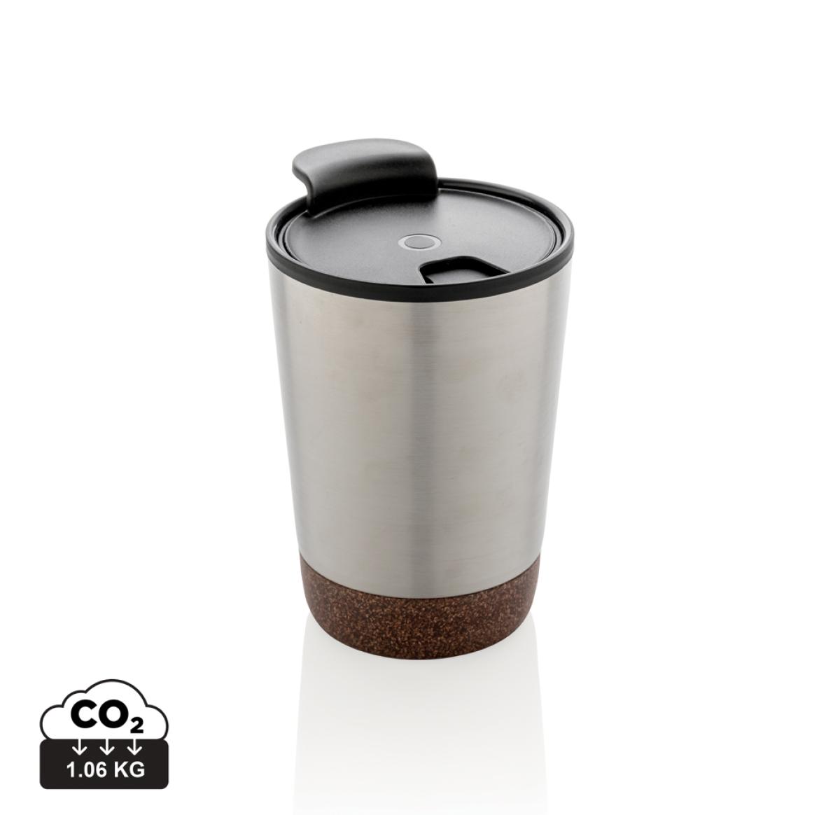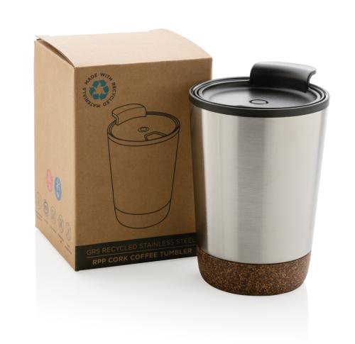 Start your day with your favourite beverage in this double wall coffee mug with recycled plastic inner and unique cork detail. Keeps your drinks warm for up to 3h and cold up to 6h. Made with GRS certified recycled materials. The inner is made from 100% GRS certified PP. GRS certification ensures a completely certified supply chain of the recycled materials. Total recycled content: 52% based on total item weight. BPA free. Capacity 300ml. Including FSC??-certified kraft packaging.